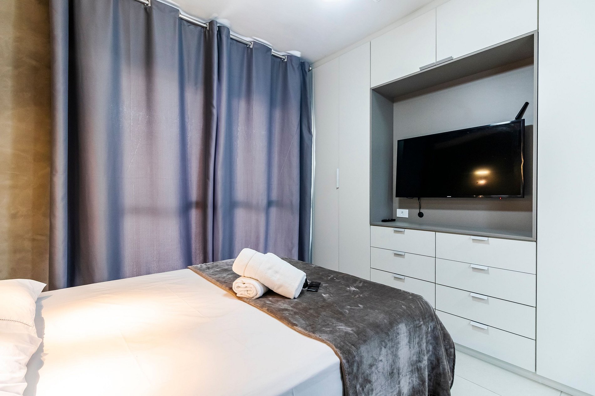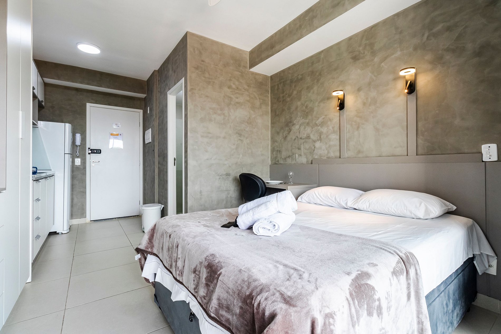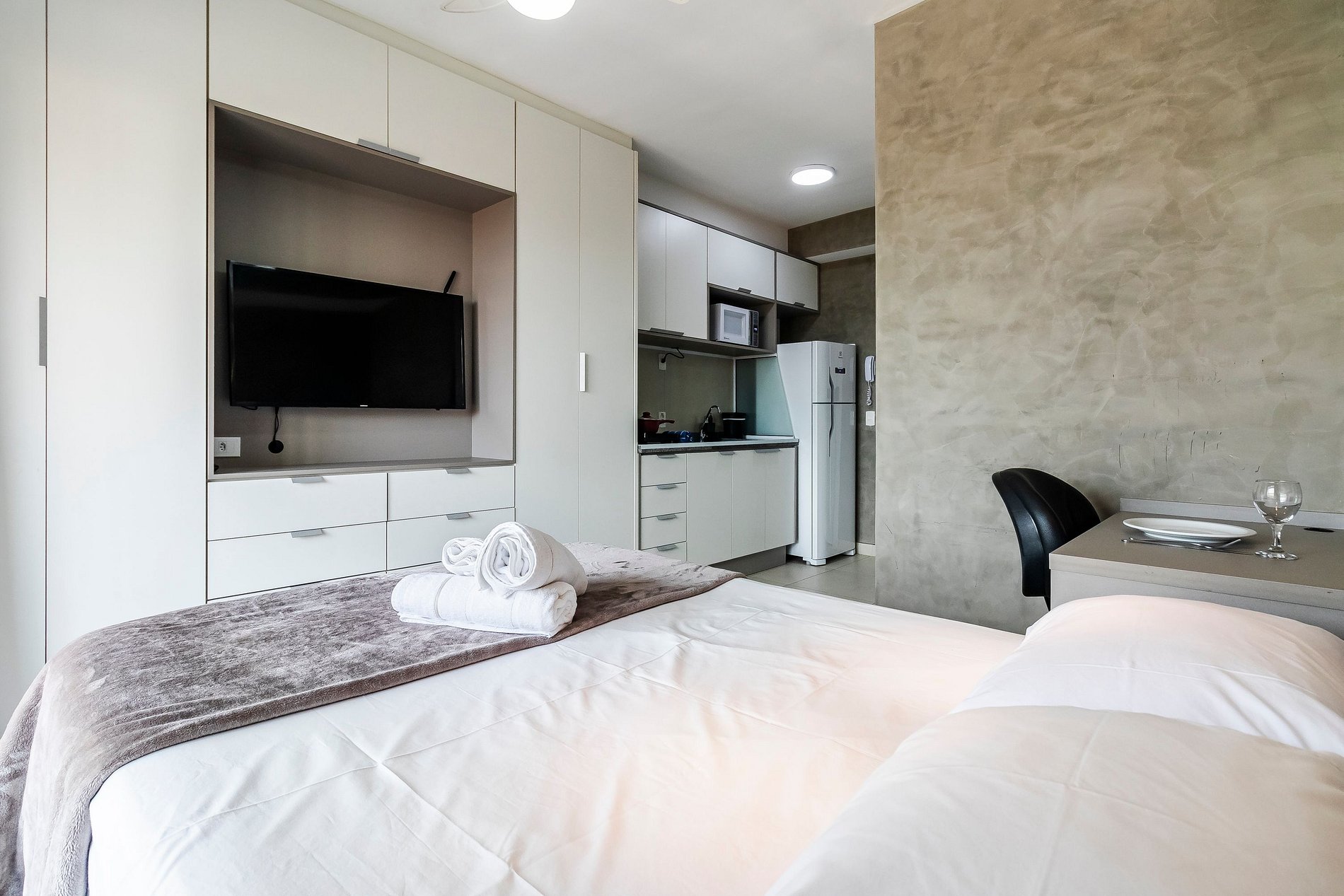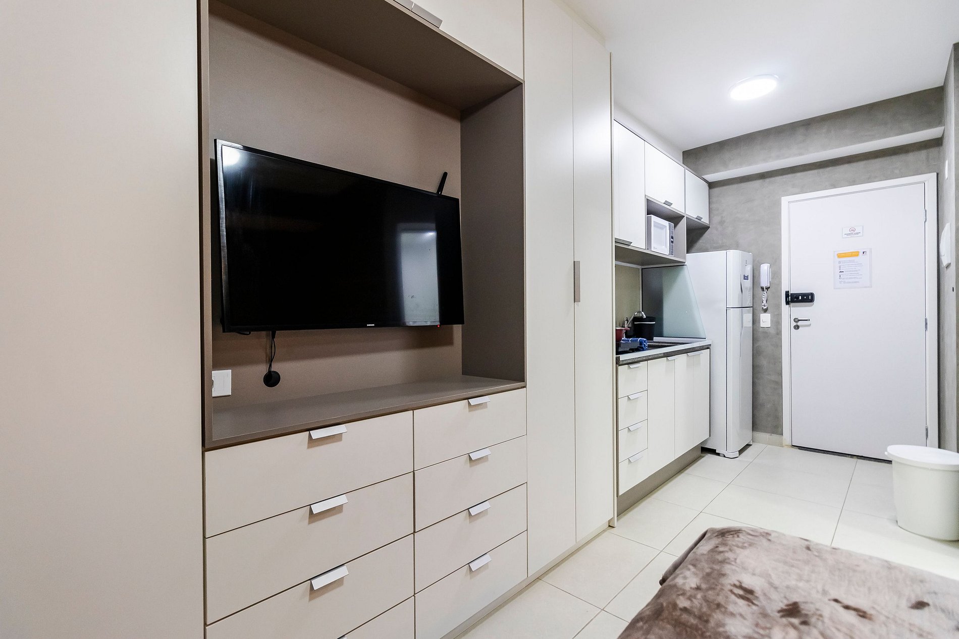Apesar de estar no agito do Centro de São Paulo, nosso Studio é surpreendentemente calmo. Isso porque ele fica voltado para a parte interna do prédio, completamente isolado do barulho da rua — perfeito para descansar depois de um dia cheio.