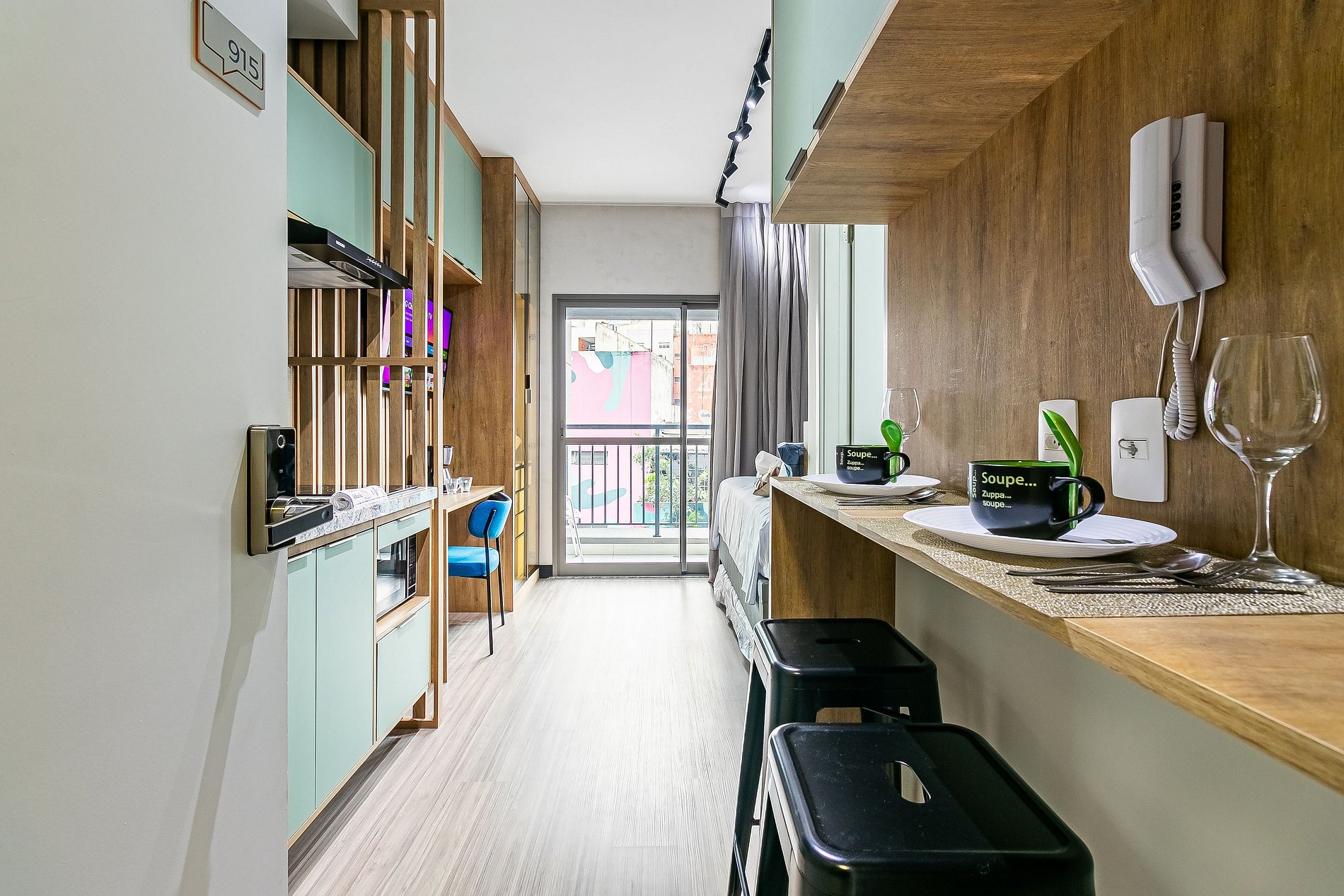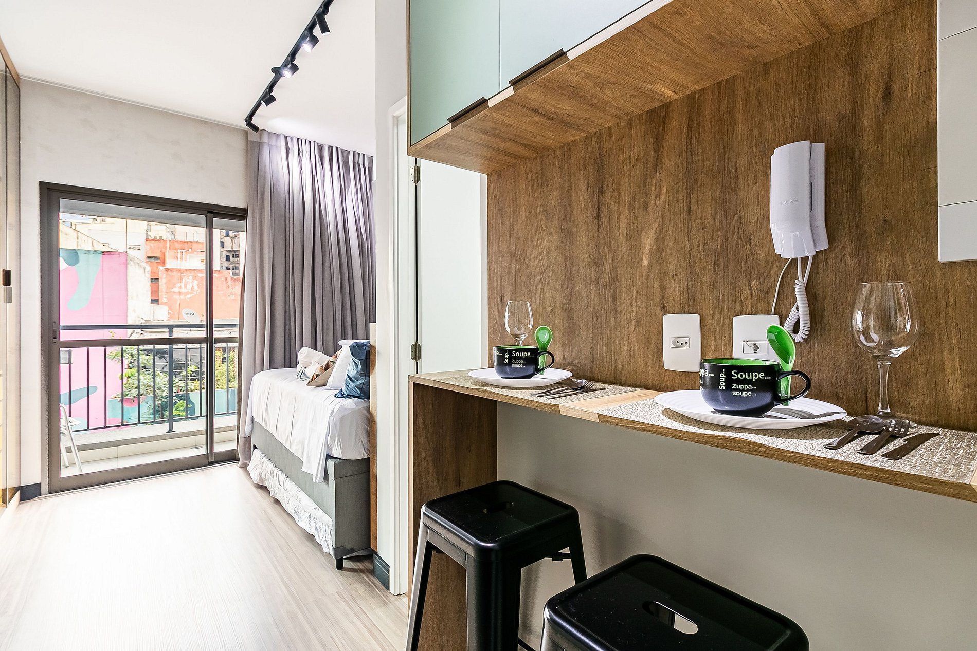 Explore São Paulo com estilo e conforto no nosso encantador Studio, oferecendo uma vista deslumbrante do icônico Copan
