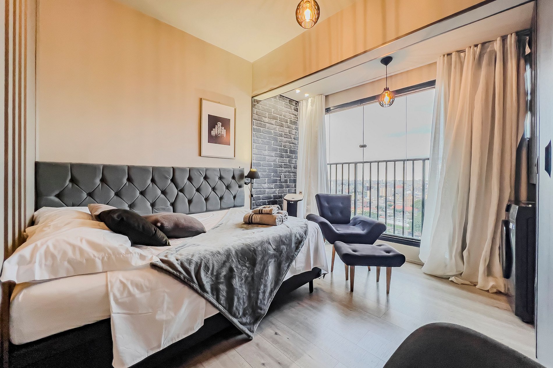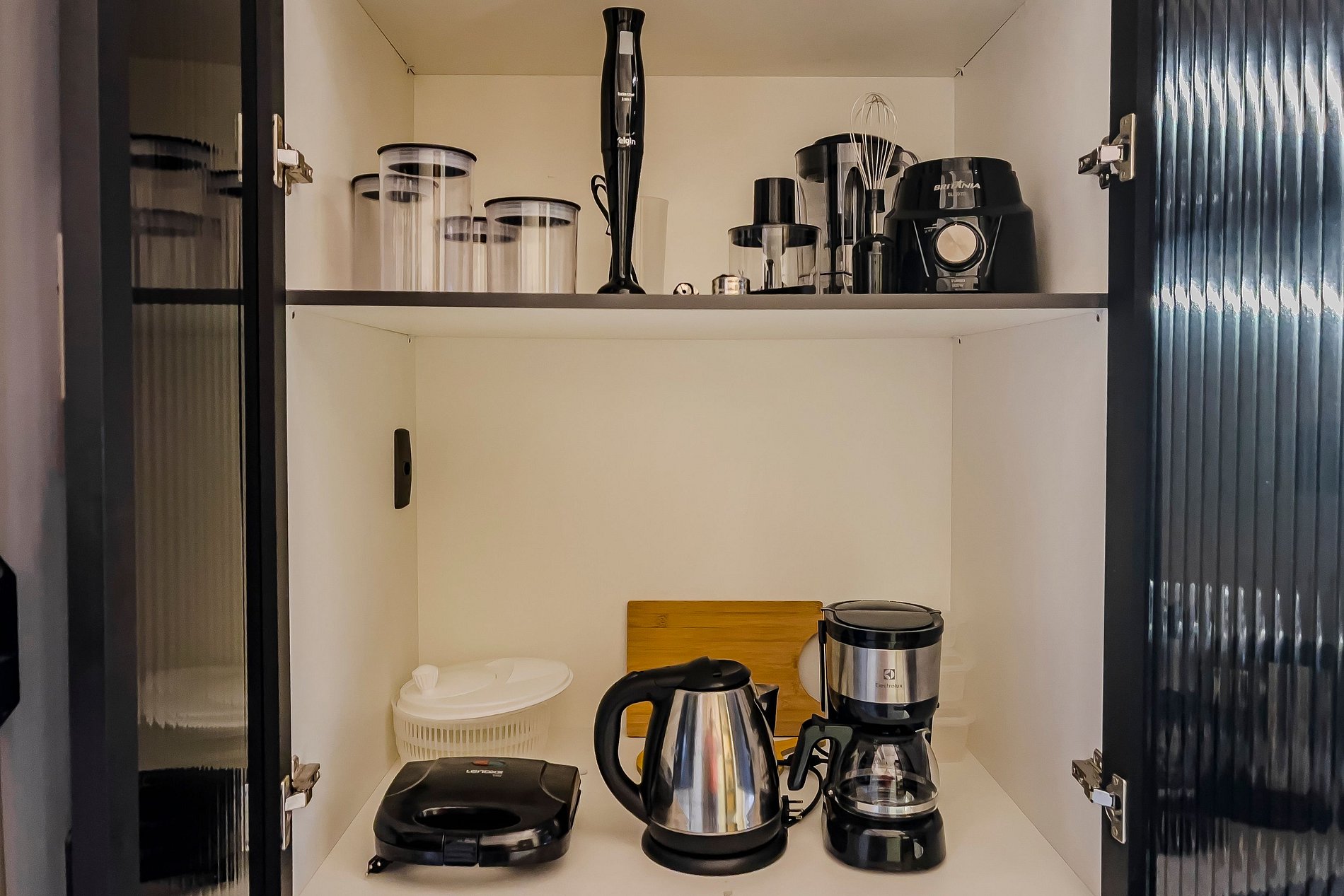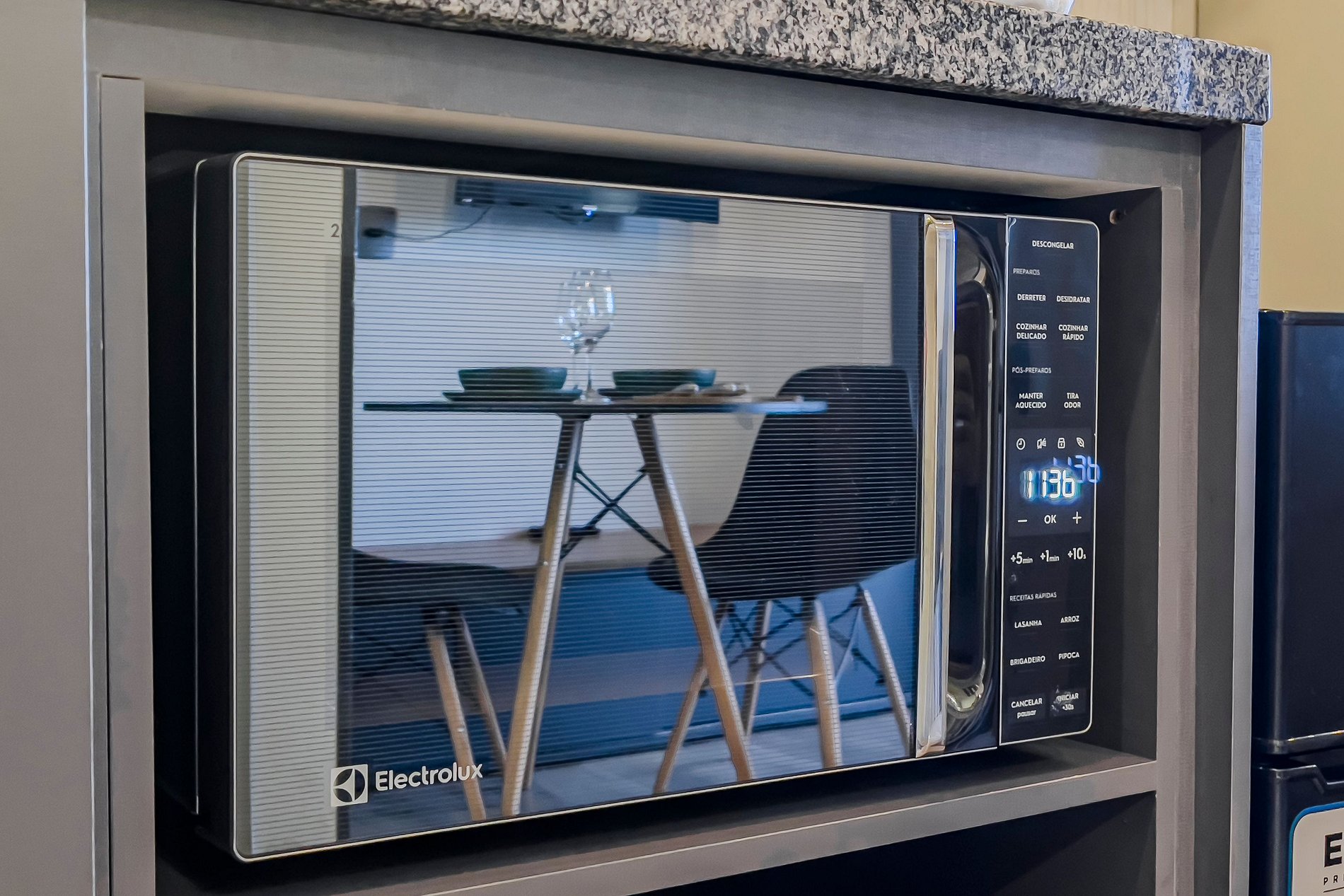 - Cozinha completa, equipada com frigobar, microondas, cafeteira, panelas, cooktop de indução de uma boca e demais itens - Sacada com vista do 16º andar.