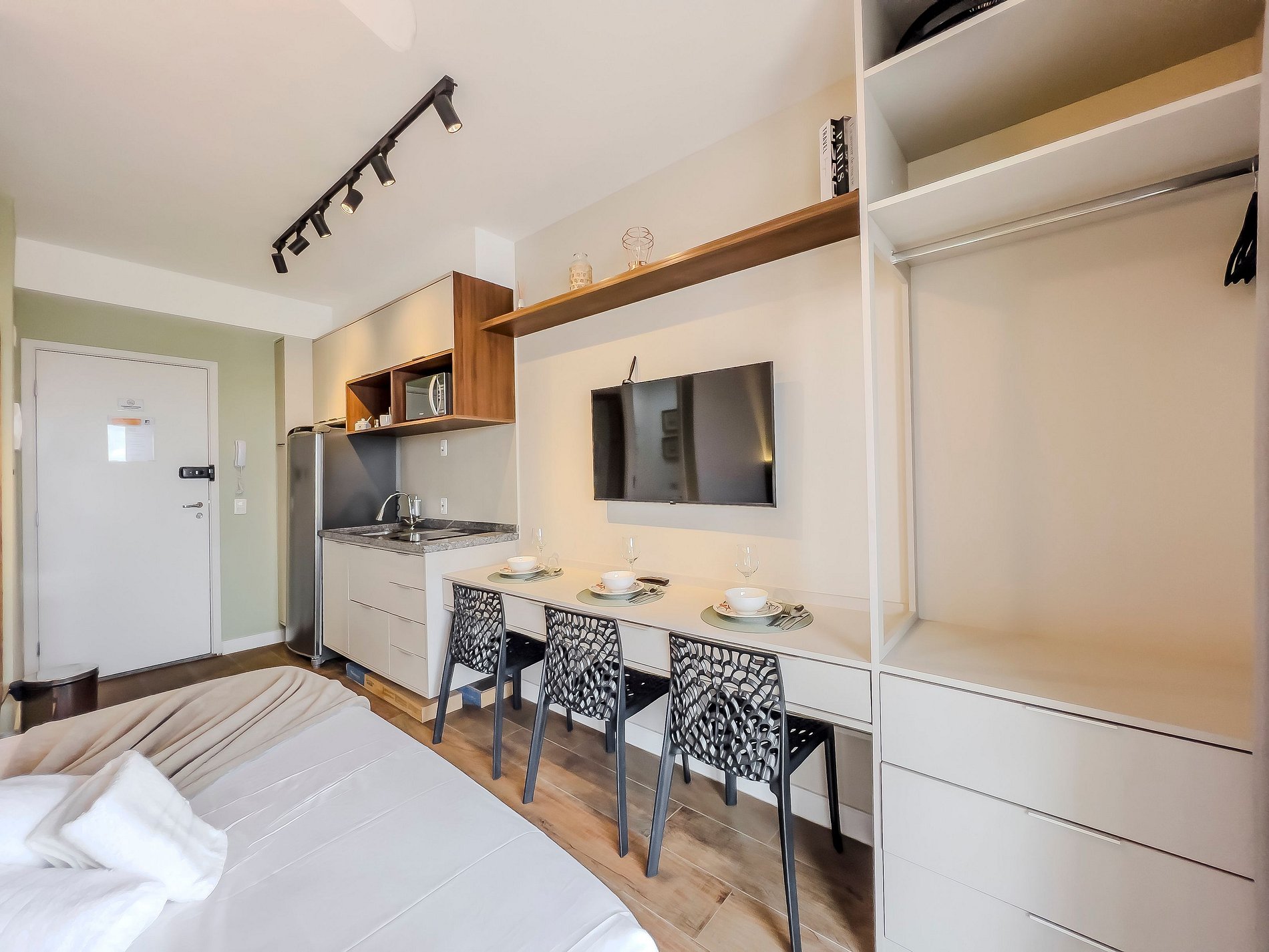 Studio com Vista Incrível + Vaga, AC e Piscina
