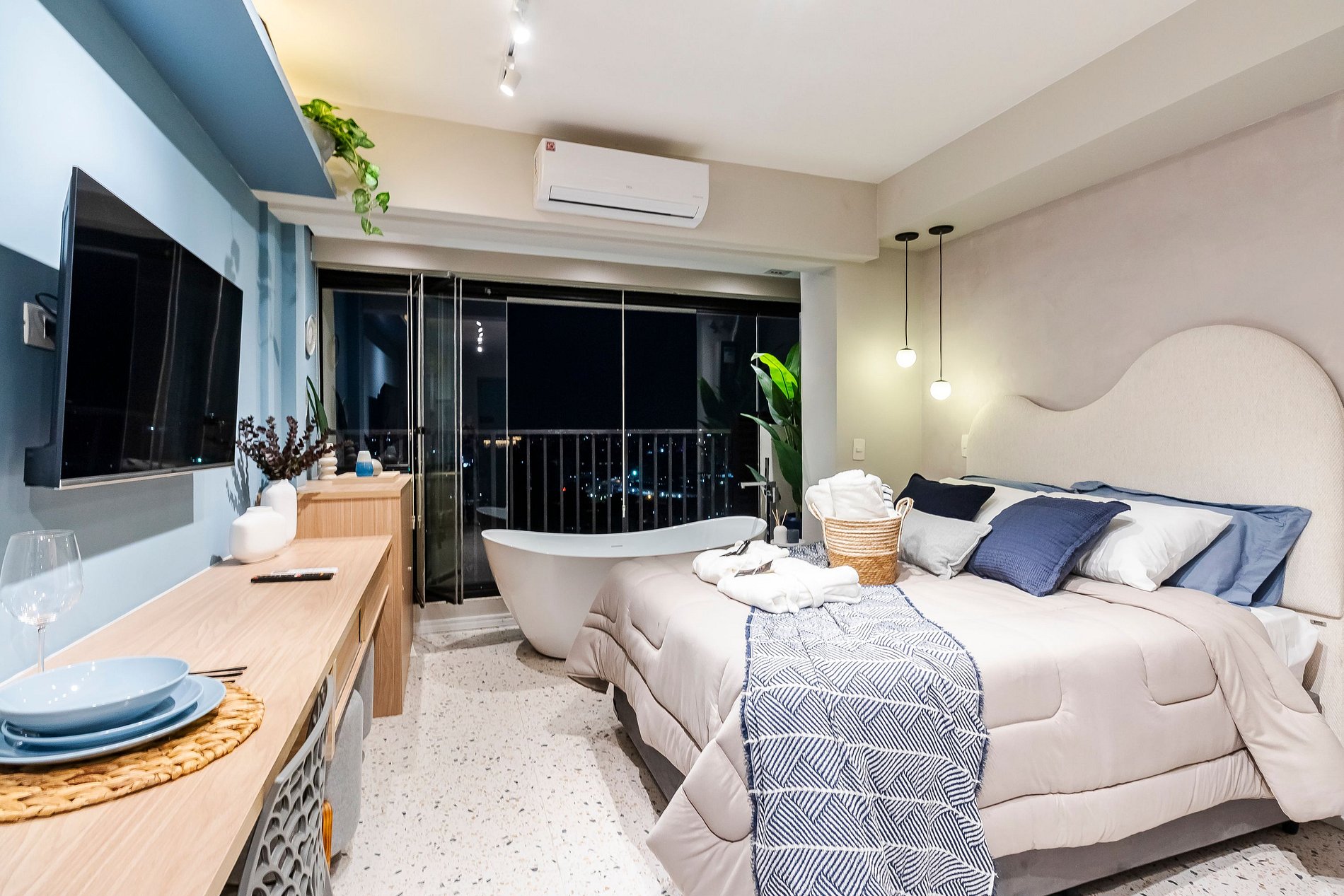 Studio no Coração de SP com Banheira Freestanding Imersão, vista do 20º andar!