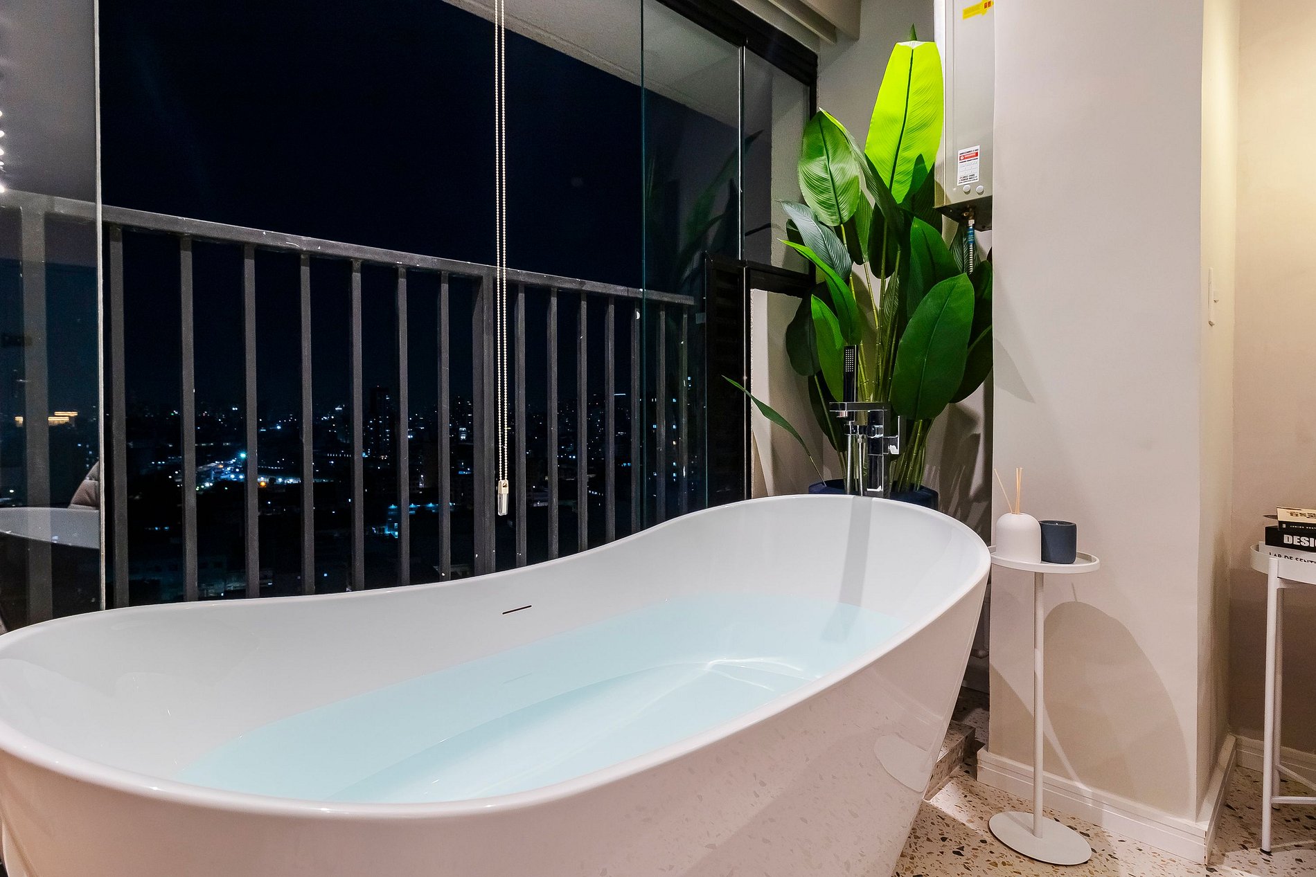 - Sacada com vista do 20º andar com uma incrível Banheira Freestanding de Imersão.