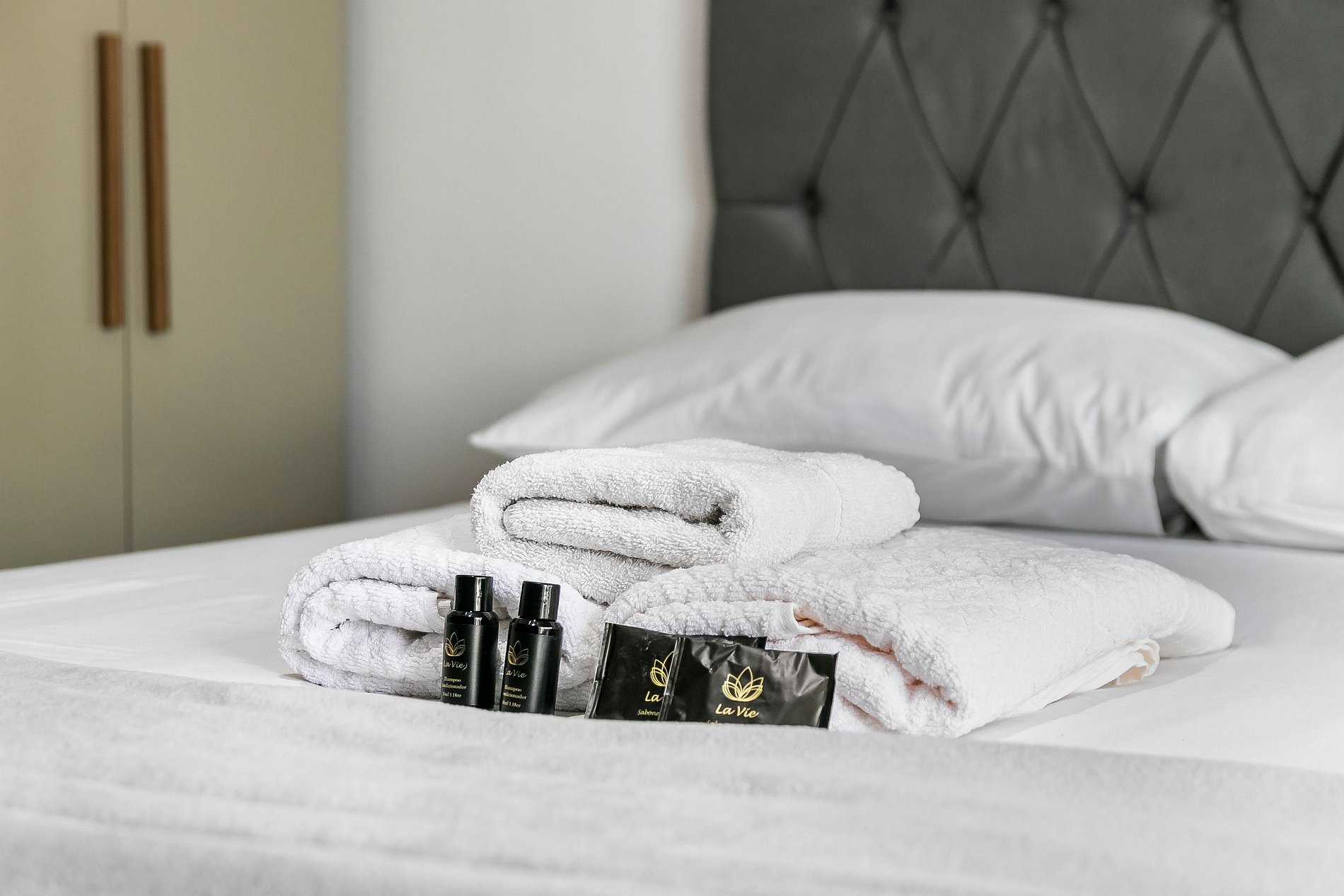 - Toalhas de banho e toalha de rosto