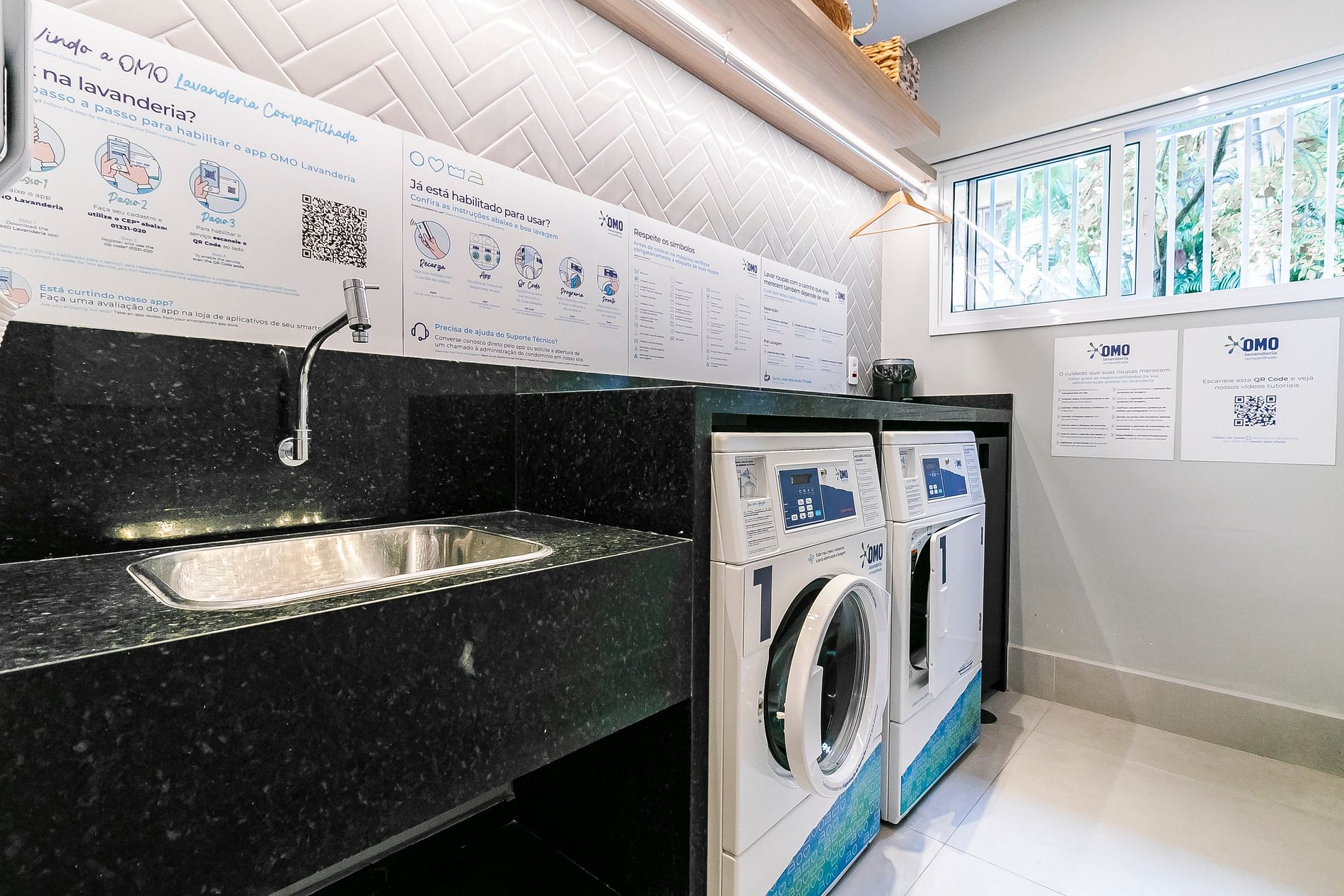OBS: Lavanderia auto serviço OMO disponível no local (paga por ciclo). Instruções de uso na própria lavanderia.