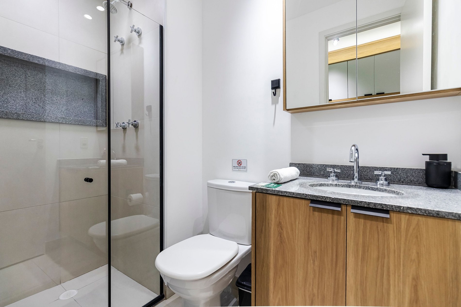 Uso do vaso sanitário: Não descarte itens no vaso sanitário, incluindo papel higiênico. Caso haja entupimento por uso inadequado, o custo do reparo será repassado.
