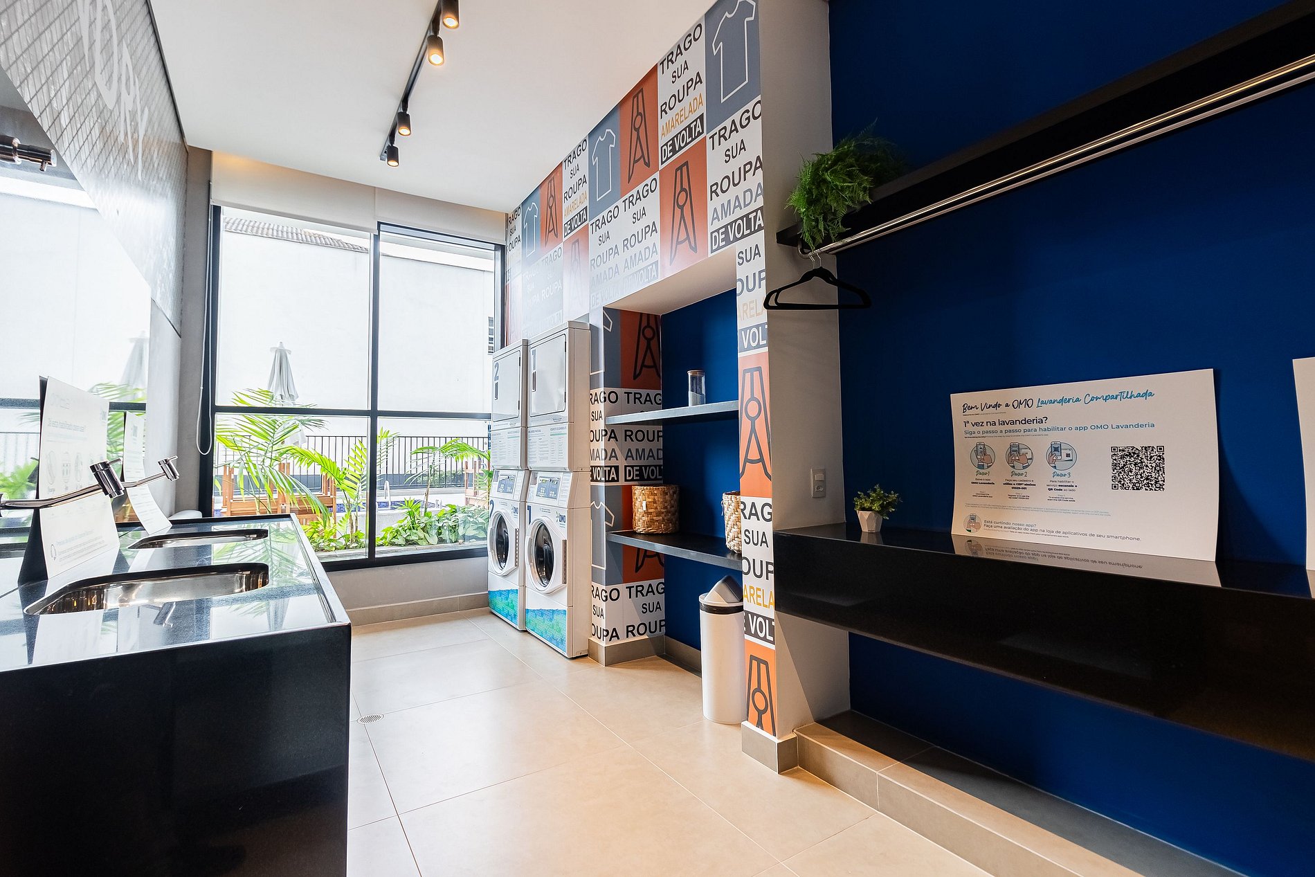 - LAVANDERIA (primeiro andar) - Horário: 24h - Lavanderia auto serviço OMO disponível no local (paga por ciclo) OBS: Instruções de uso e valores, na própria lavanderia.