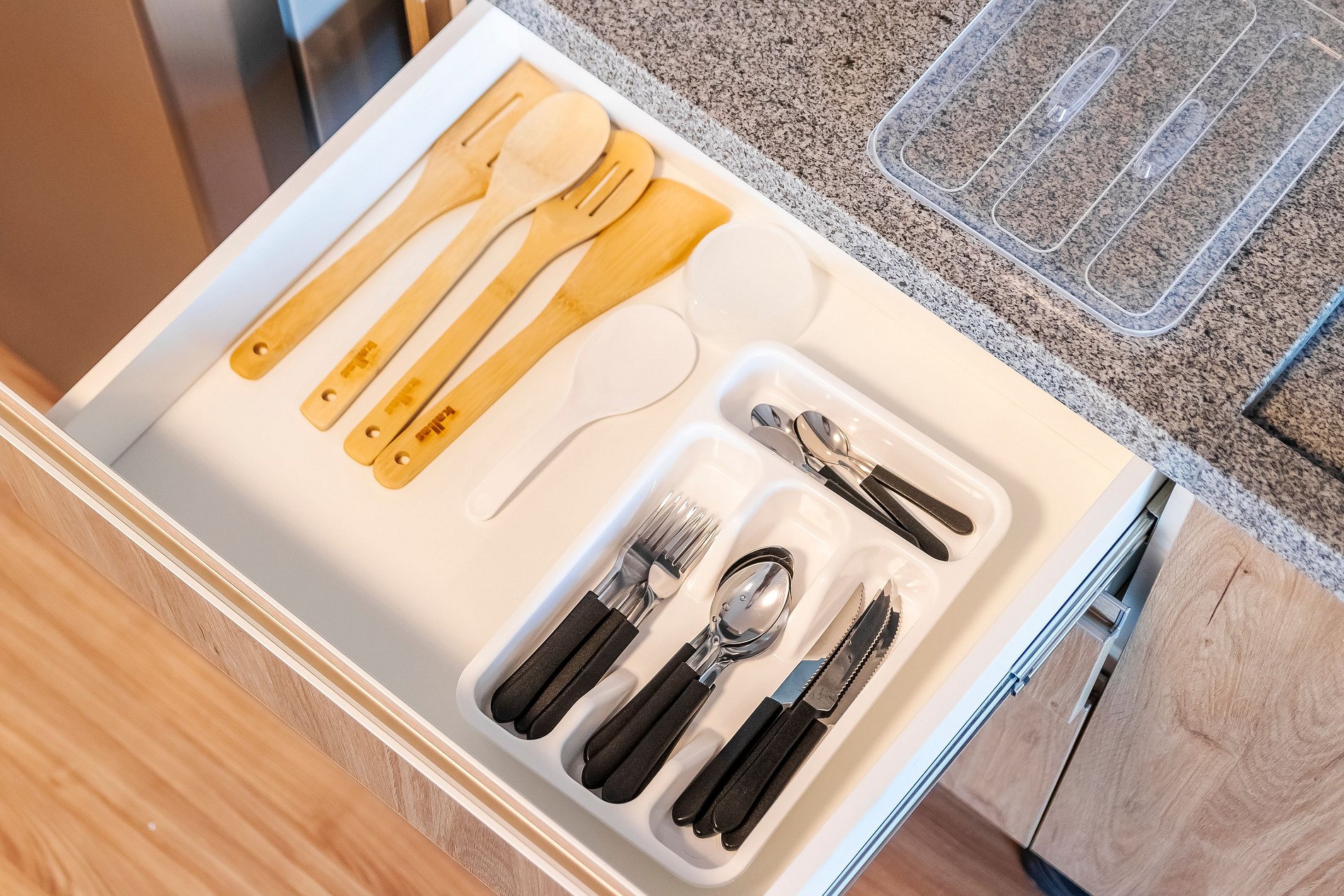 - Cozinha completa, equipada com geladeira, microondas, cooktop de duas bocas e depurador.
