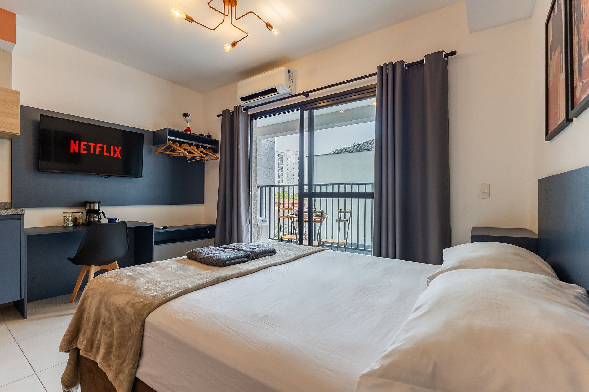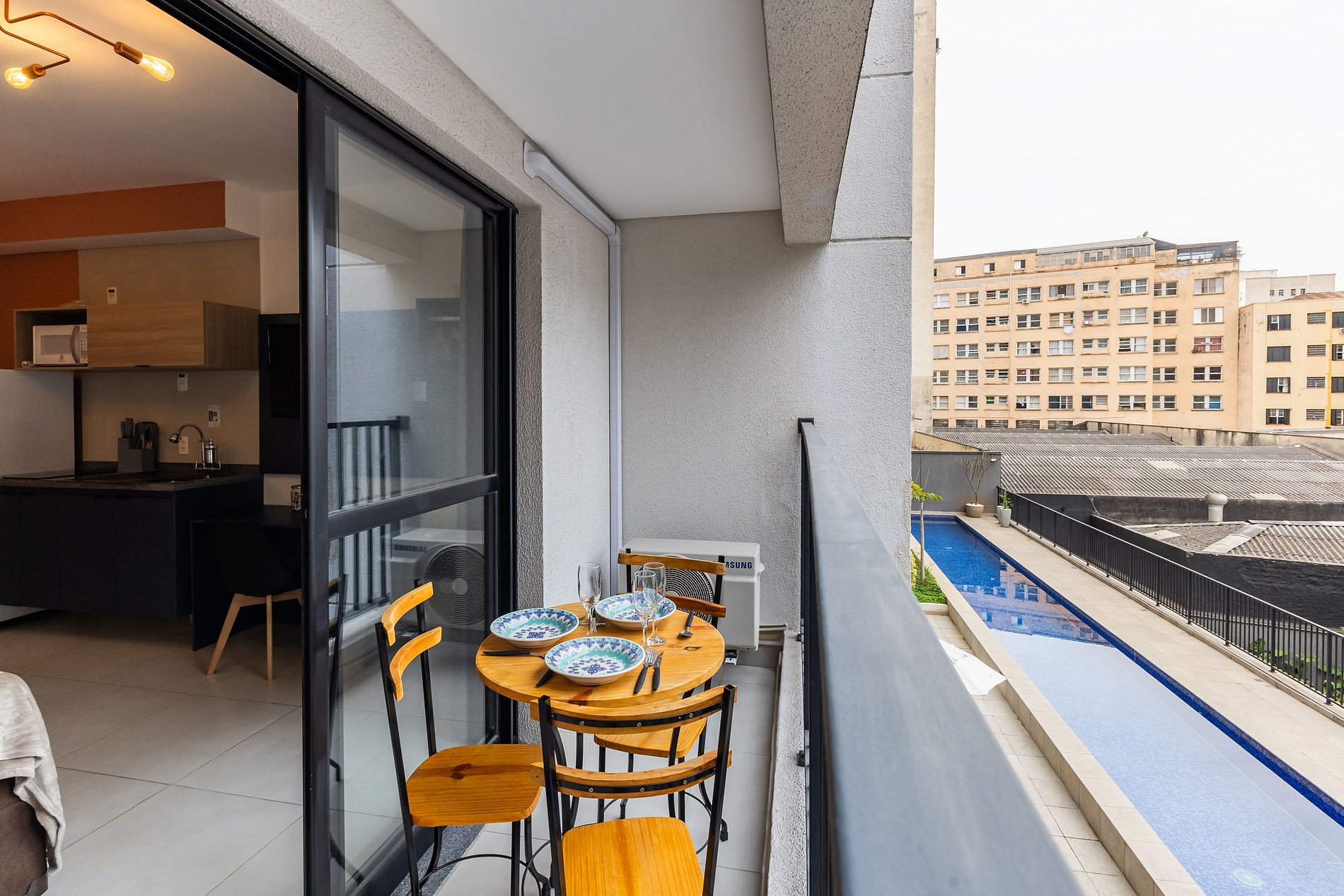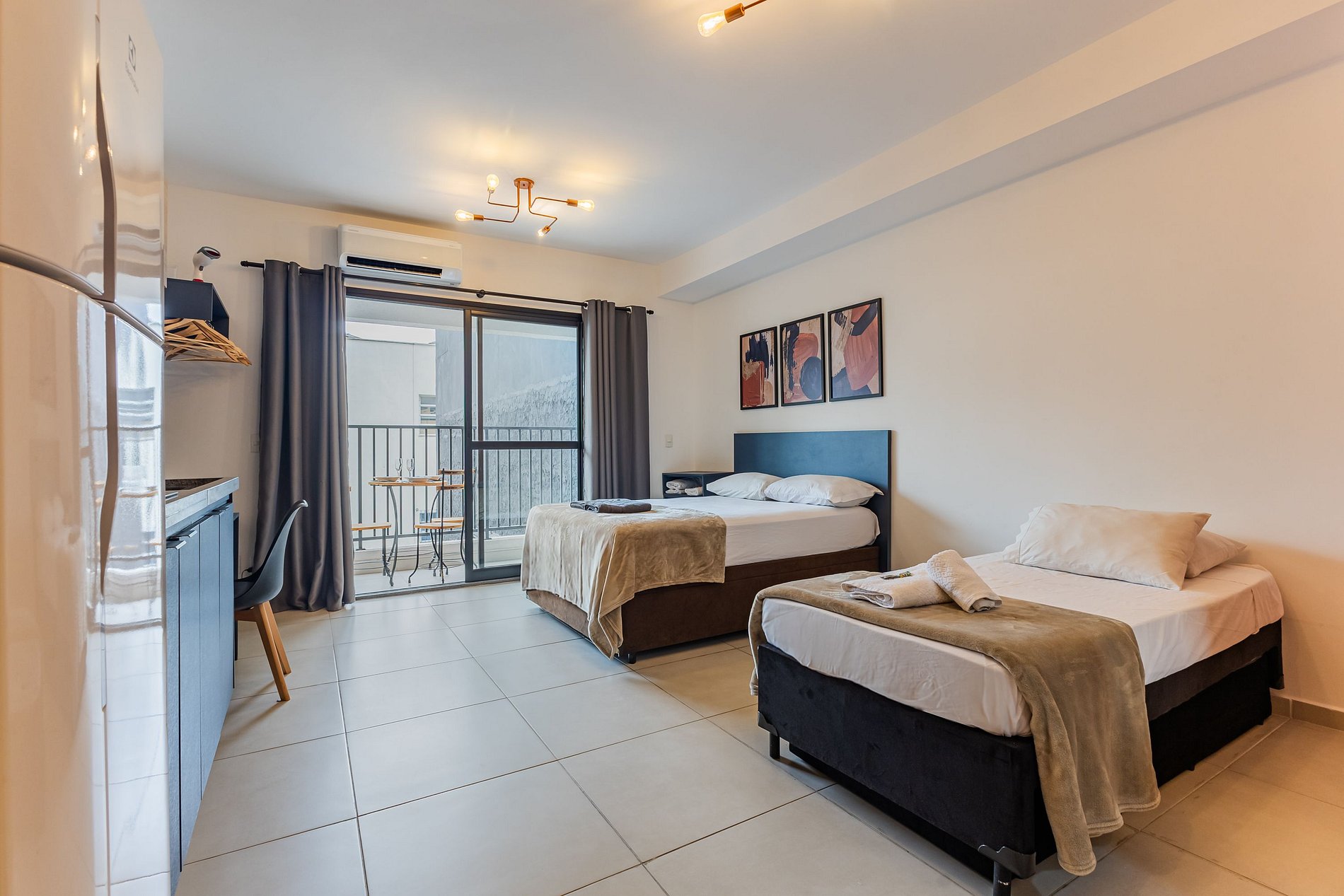 Apesar de estar no agito do Centro de São Paulo, nosso Studio é surpreendentemente calmo. Isso porque ele fica voltado para a parte interna do prédio, completamente isolado do barulho da rua — perfeito para descansar depois de um dia cheio.