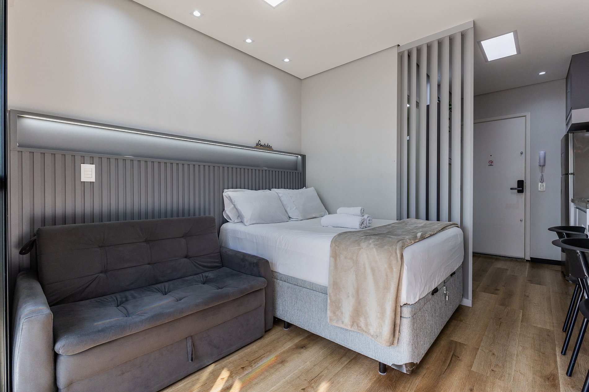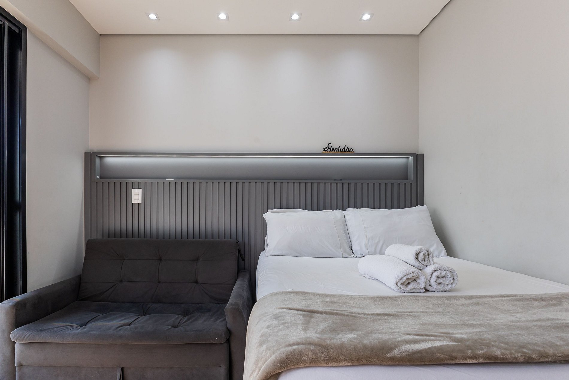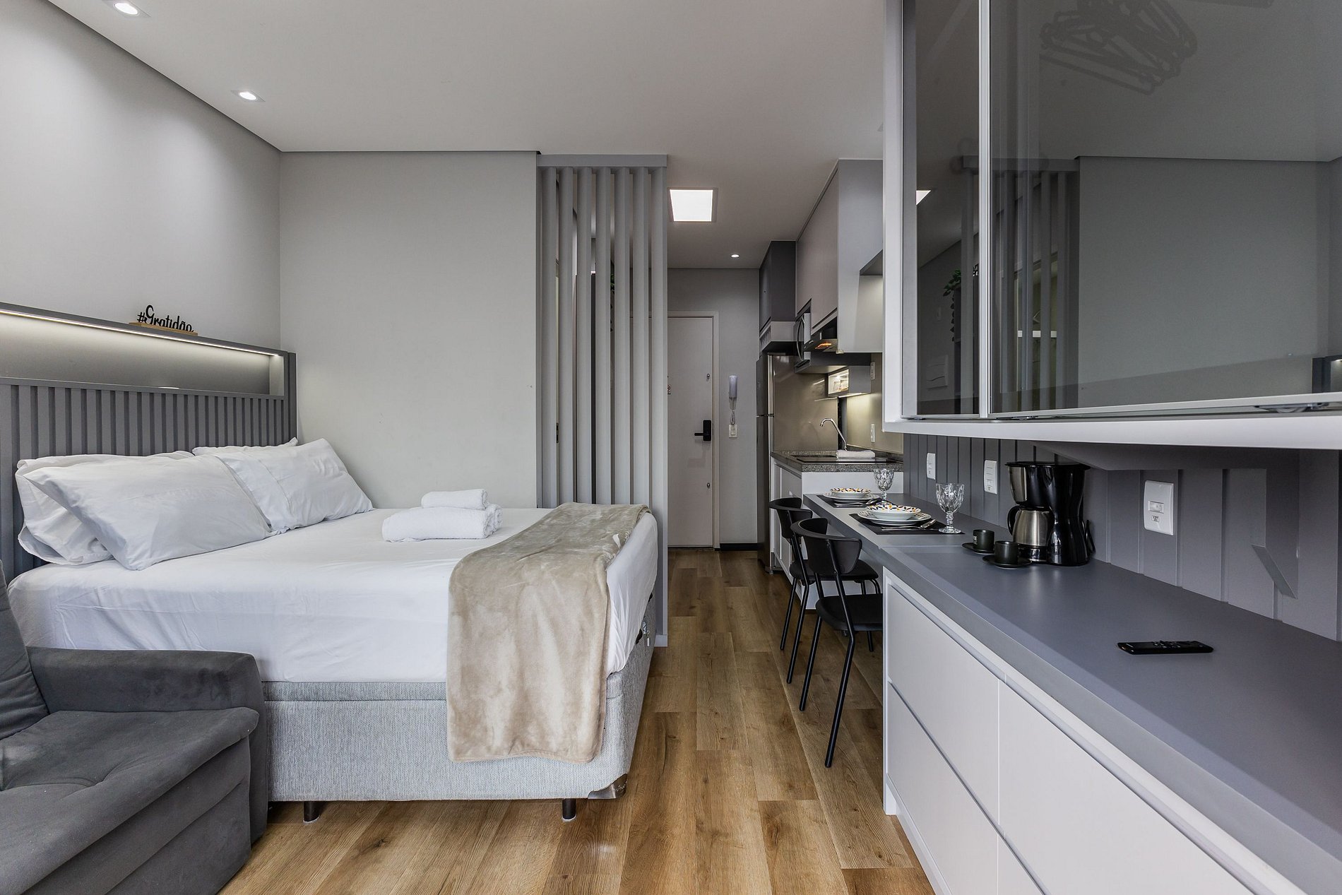 O Studio é ideal para quem preza por um ambiente moderno e estiloso, comporta até 3 pessoas de forma confortável, ótimo para famílias ou grupos de amigos!