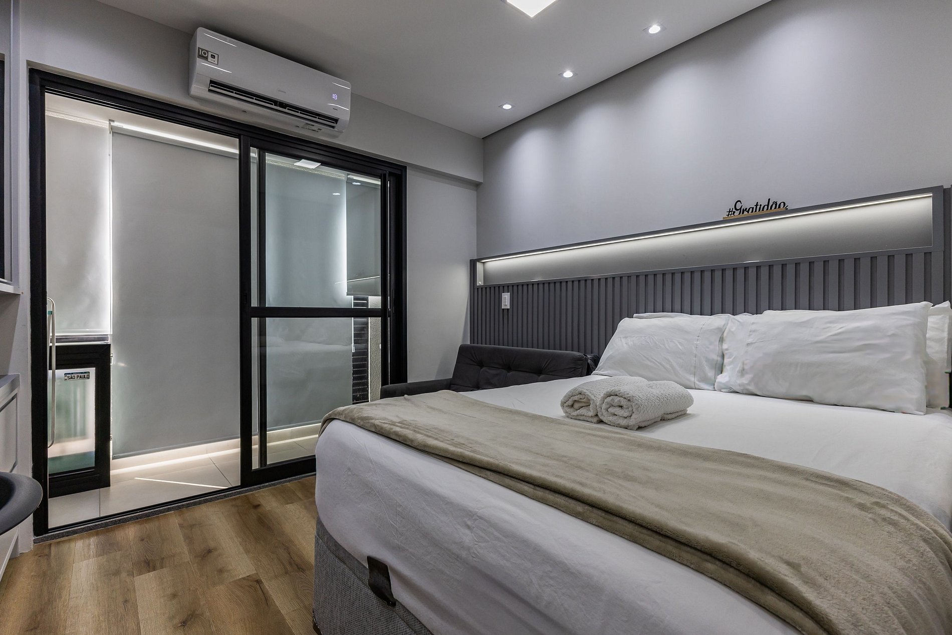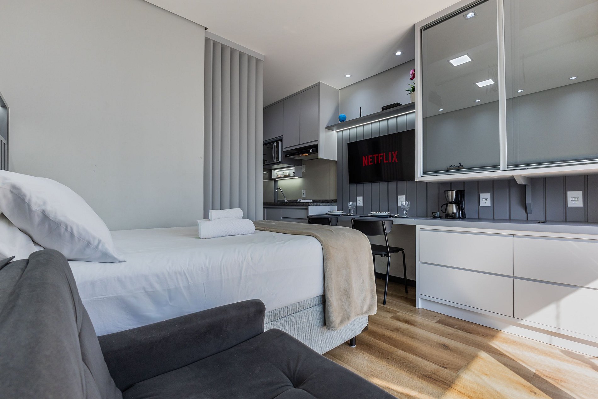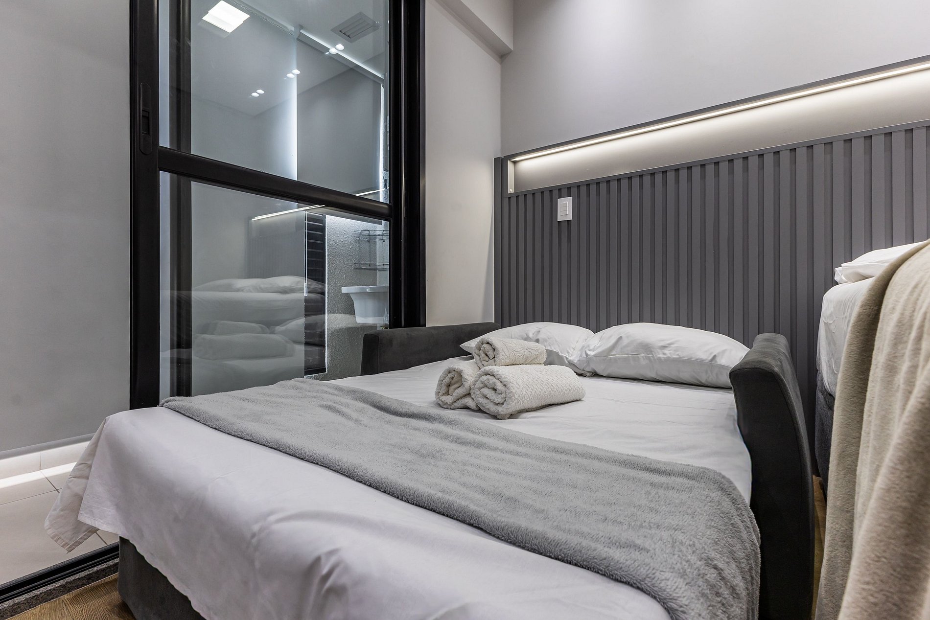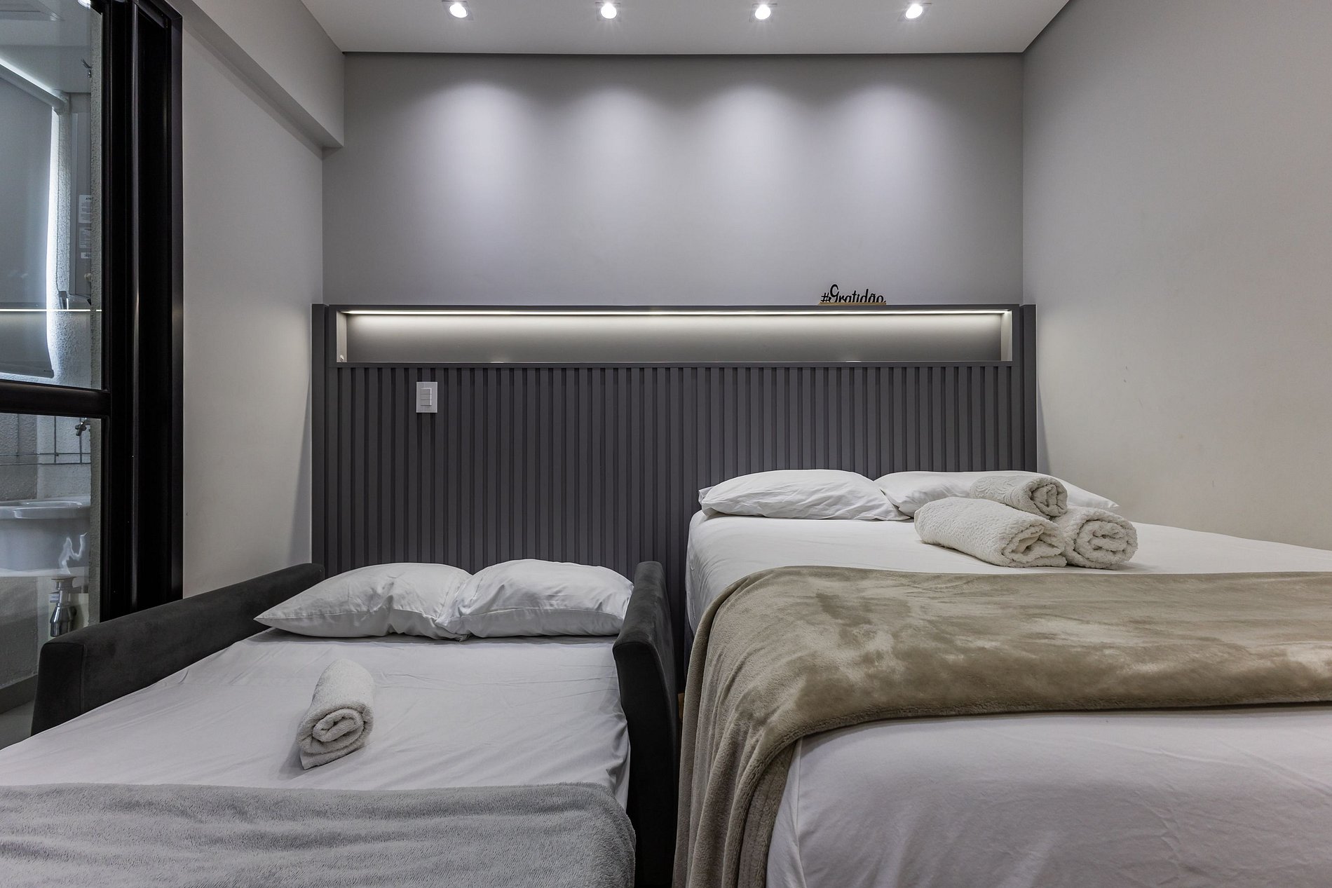 O Studio é ideal para quem preza por um ambiente moderno e estiloso, comporta até 3 pessoas de forma confortável, ótimo para famílias ou grupos de amigos!