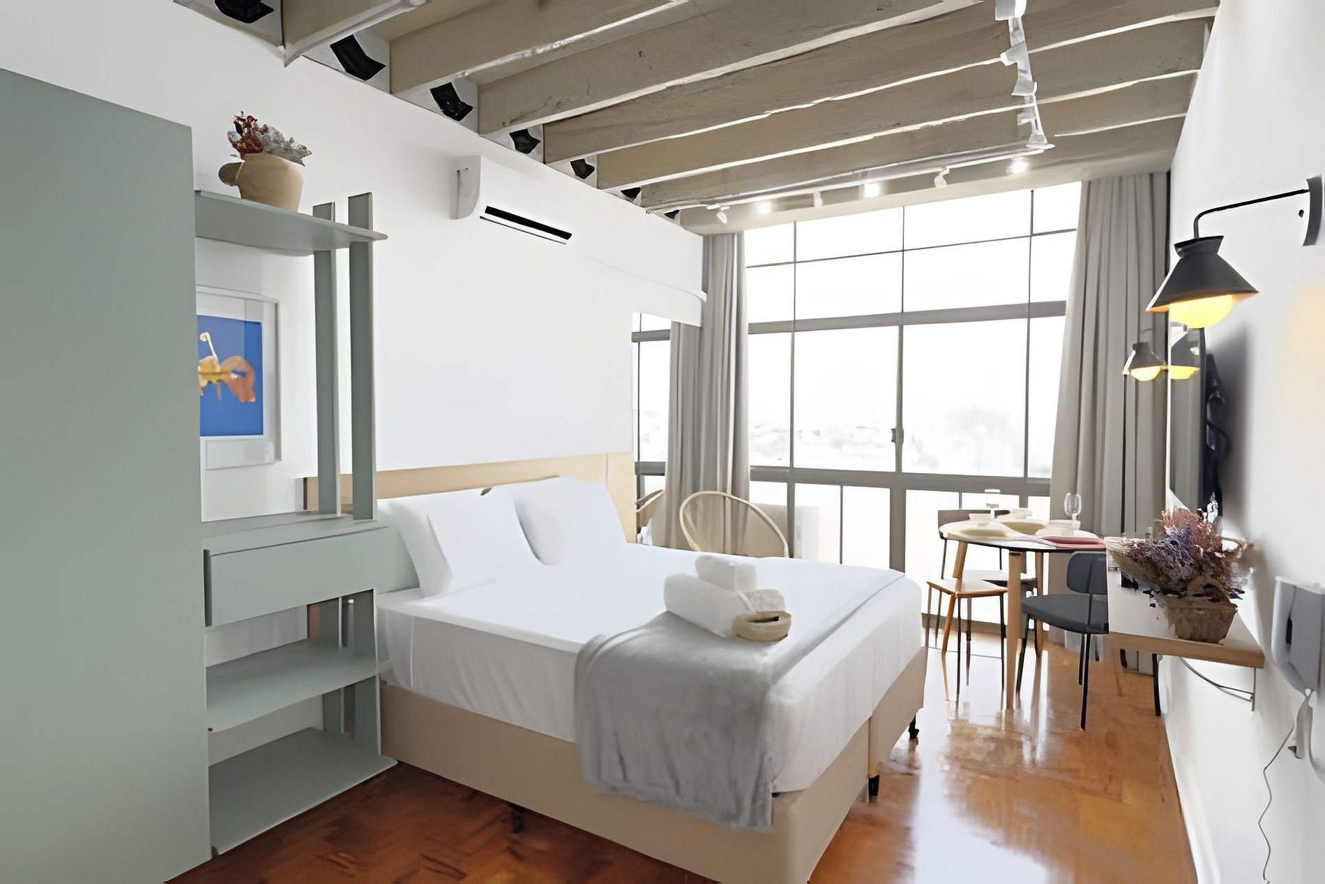 Mais do que um prédio, o Copan é um universo à parte: um verdadeiro bairro vertical. No térreo, uma charmosa galeria comercial reúne cafés, restaurantes, livrarias e ateliês, proporcionando praticidade e autenticidade aos seus hóspedes.