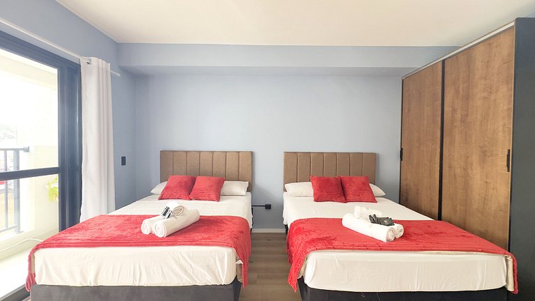 Studio amplo com 2 camas de casal – 20m do Metrô