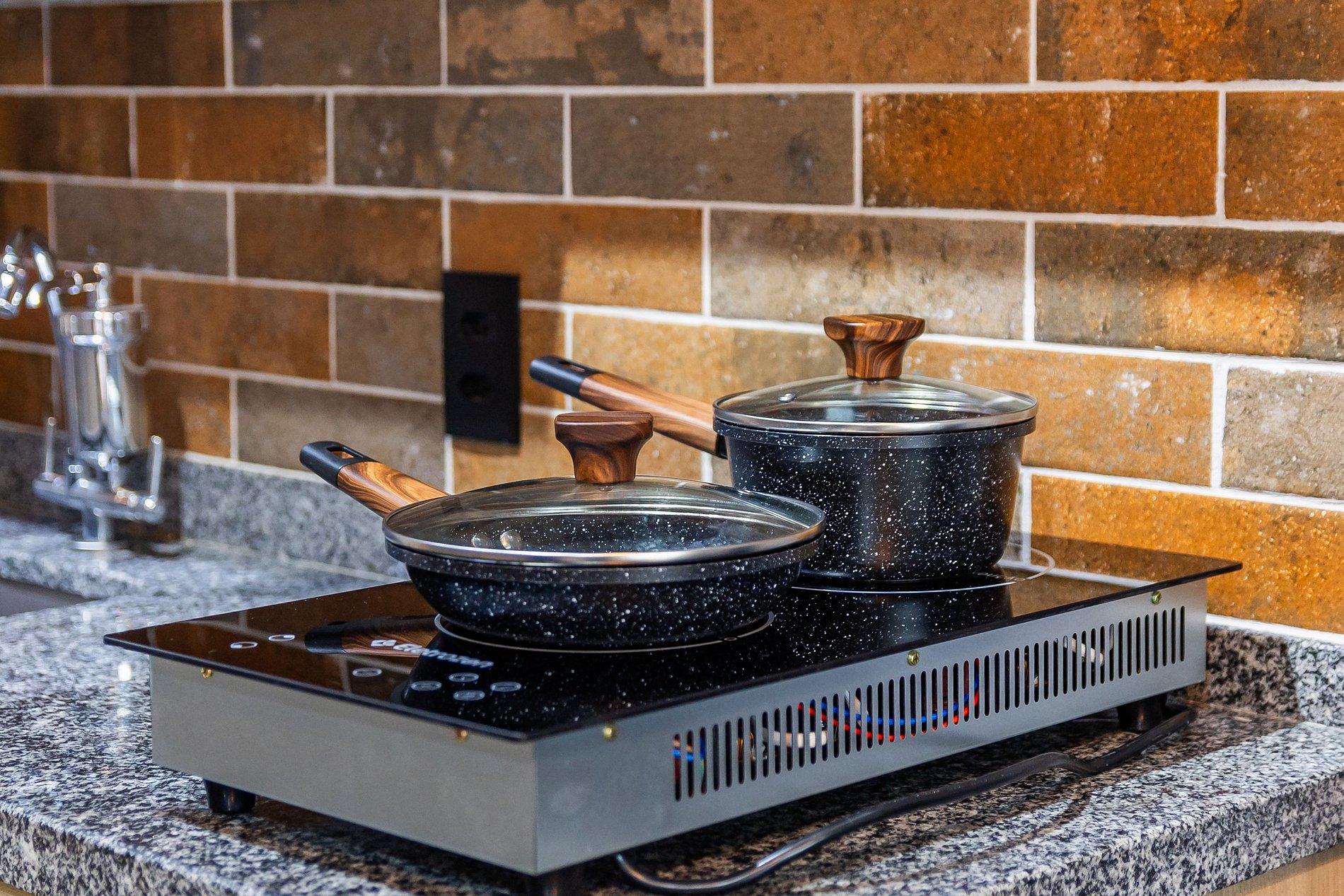 - Cozinha completa, equipada com geladeira, micro-ondas, cooktop de duas bocas e demais utensílios.