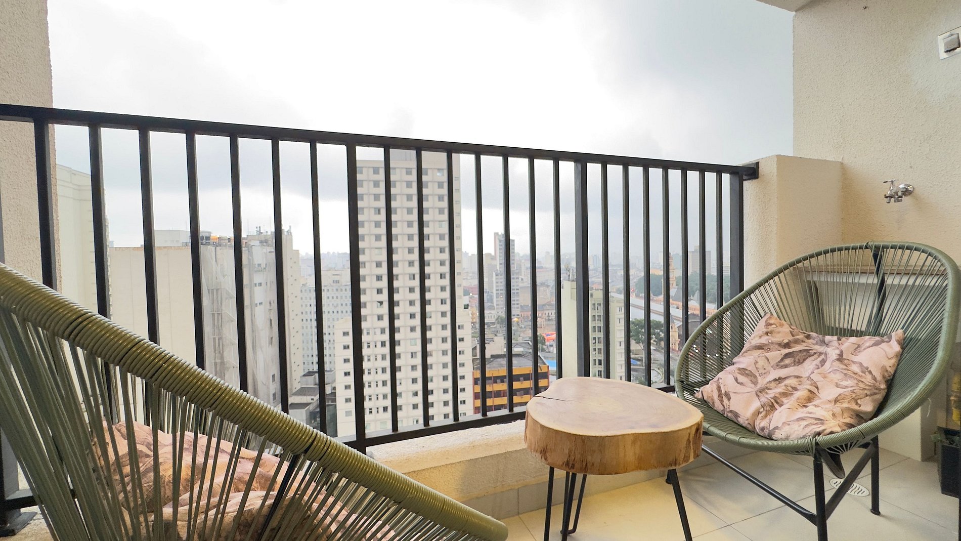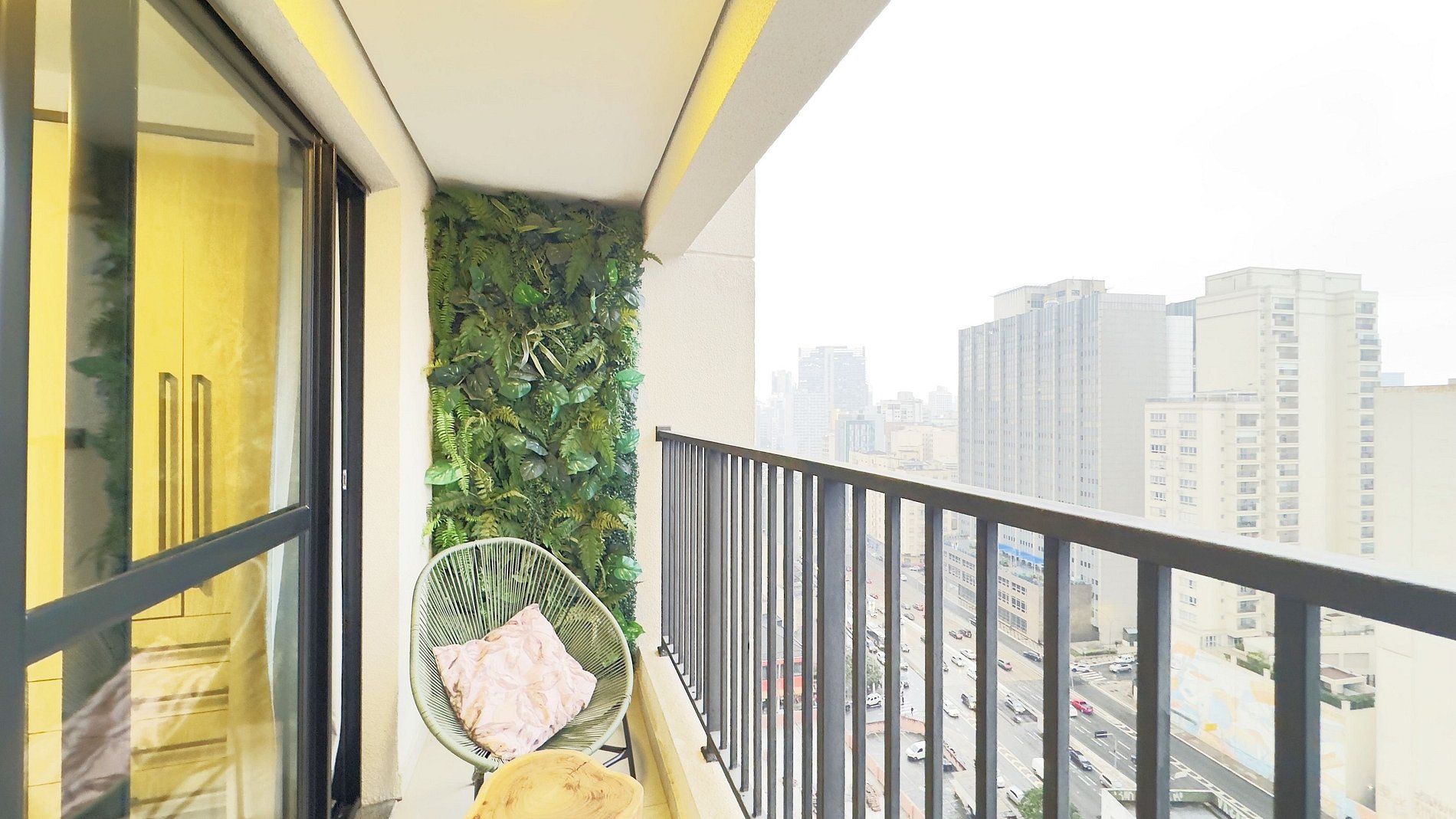 - Sacada com vista maravilhosa do 18º andar, possivel ver o Farol Santander e o Icônico Prédio Mirante do Vale, onde fica o SKY SAMPA (sacada de vidro).