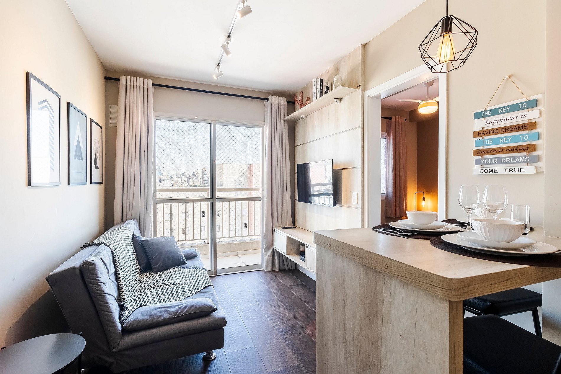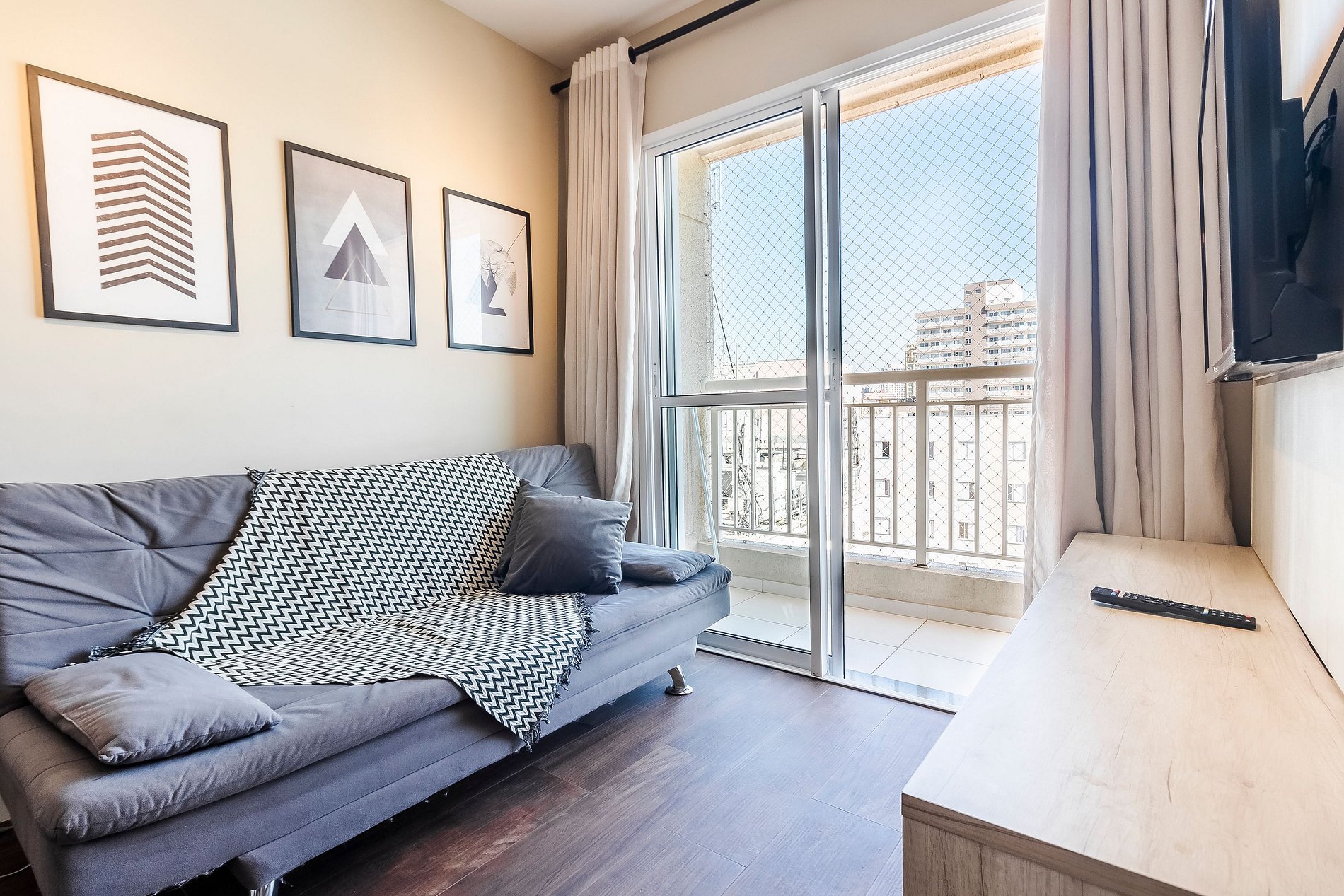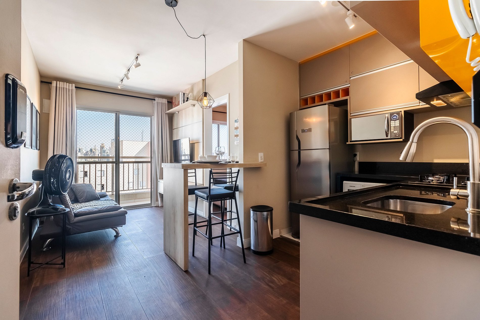 Apto no 16º andar, vista para a Cidade de São Paulo, na sacada é possivel ver o Farol Santander.