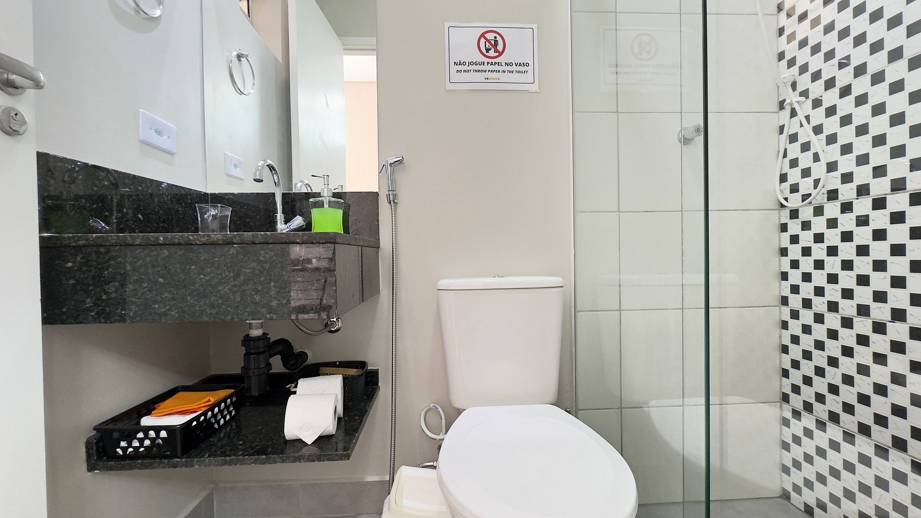 Uso do vaso sanitário: Não descarte itens no vaso sanitário, incluindo papel higiênico. Caso haja entupimento por uso inadequado, o custo do reparo será repassado.