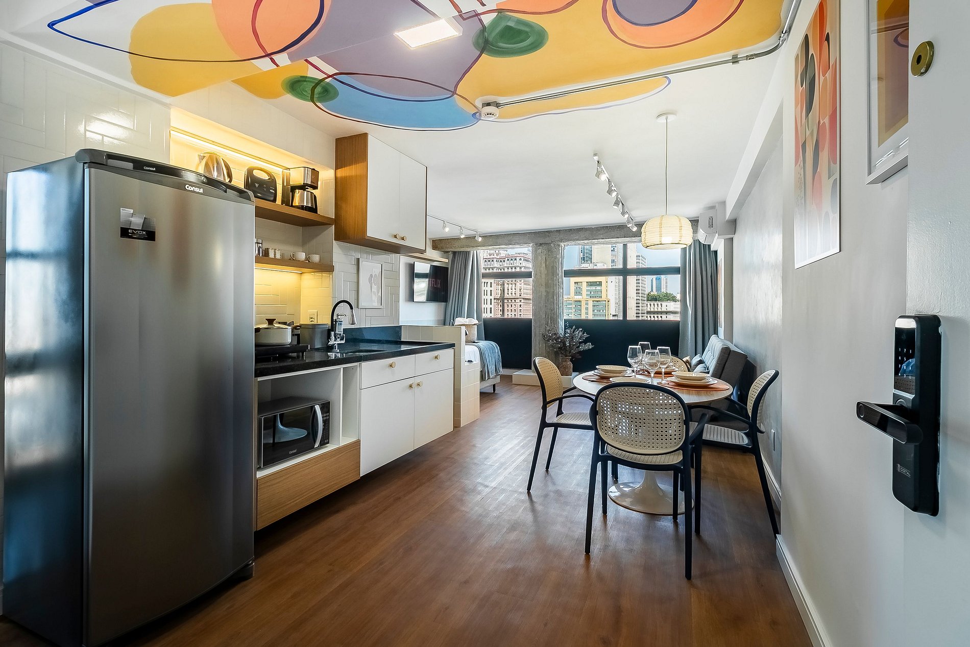 Ao adentrar este estúdio amplo e iluminado, você se depara com um ambiente sofisticado e acolhedor. Cada detalhe foi pensado para proporcionar conforto e estilo, com móveis elegantes e uma decoração que reflete a rica história do centro paulistano. As fotos falam por si: espaços amplos, iluminação natural que valoriza cada canto e um design contemporâneo que transforma o espaço em um verdadeiro lar longe de casa.