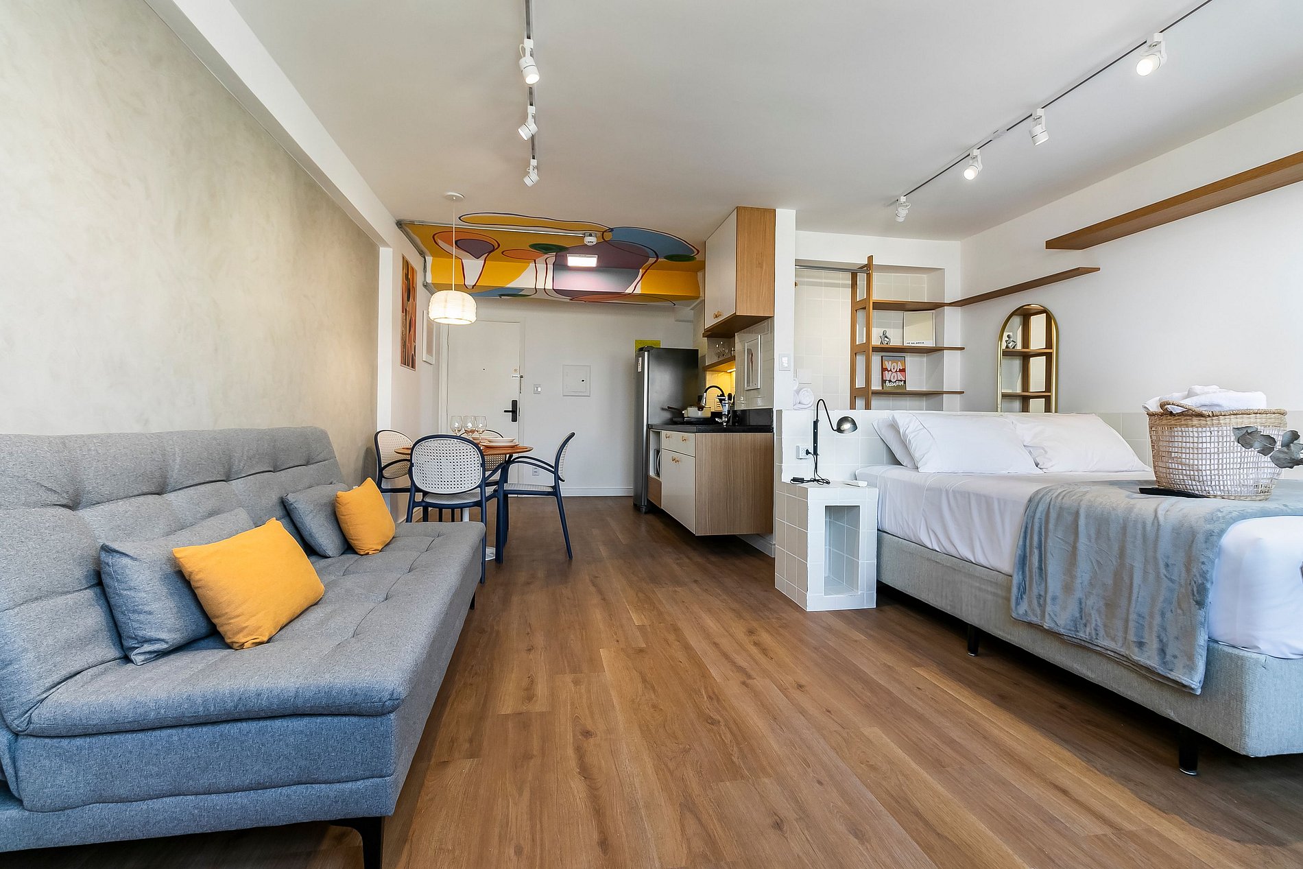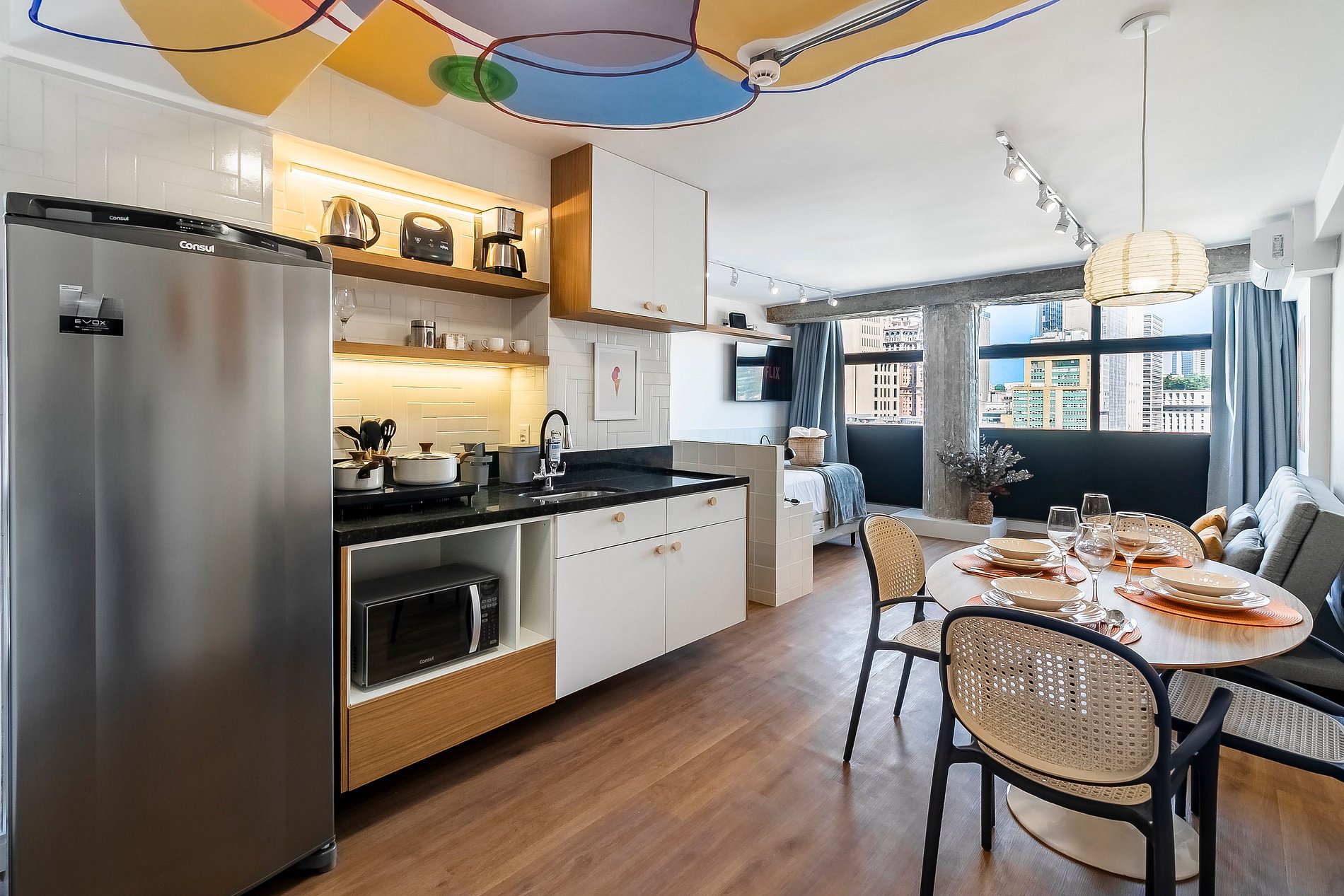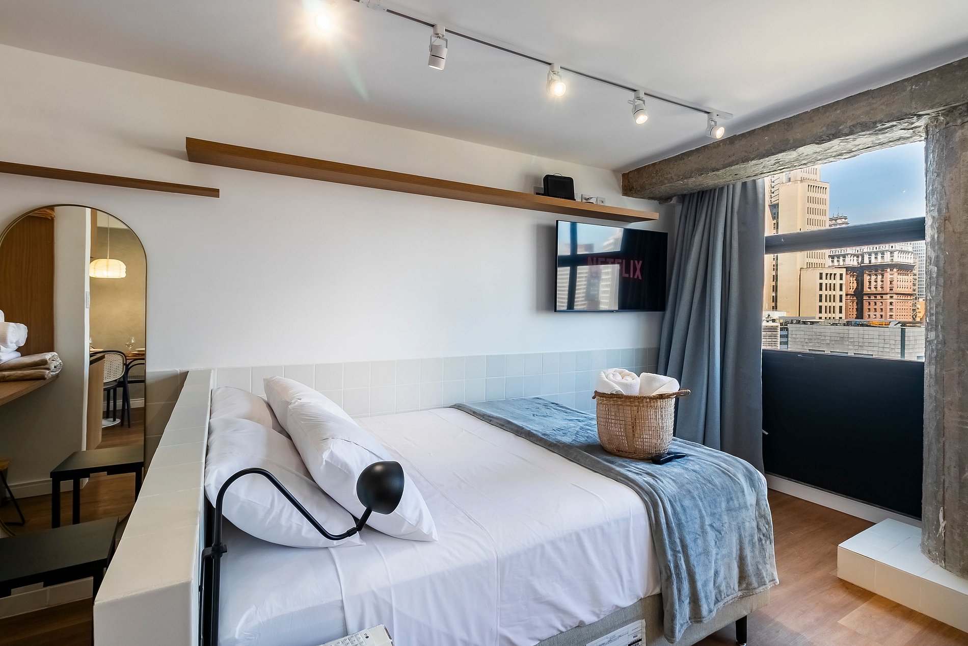 Ao adentrar este estúdio amplo e iluminado, você se depara com um ambiente sofisticado e acolhedor. Cada detalhe foi pensado para proporcionar conforto e estilo, com móveis elegantes e uma decoração que reflete a rica história do centro paulistano. As fotos falam por si: espaços amplos, iluminação natural que valoriza cada canto e um design contemporâneo que transforma o espaço em um verdadeiro lar longe de casa.