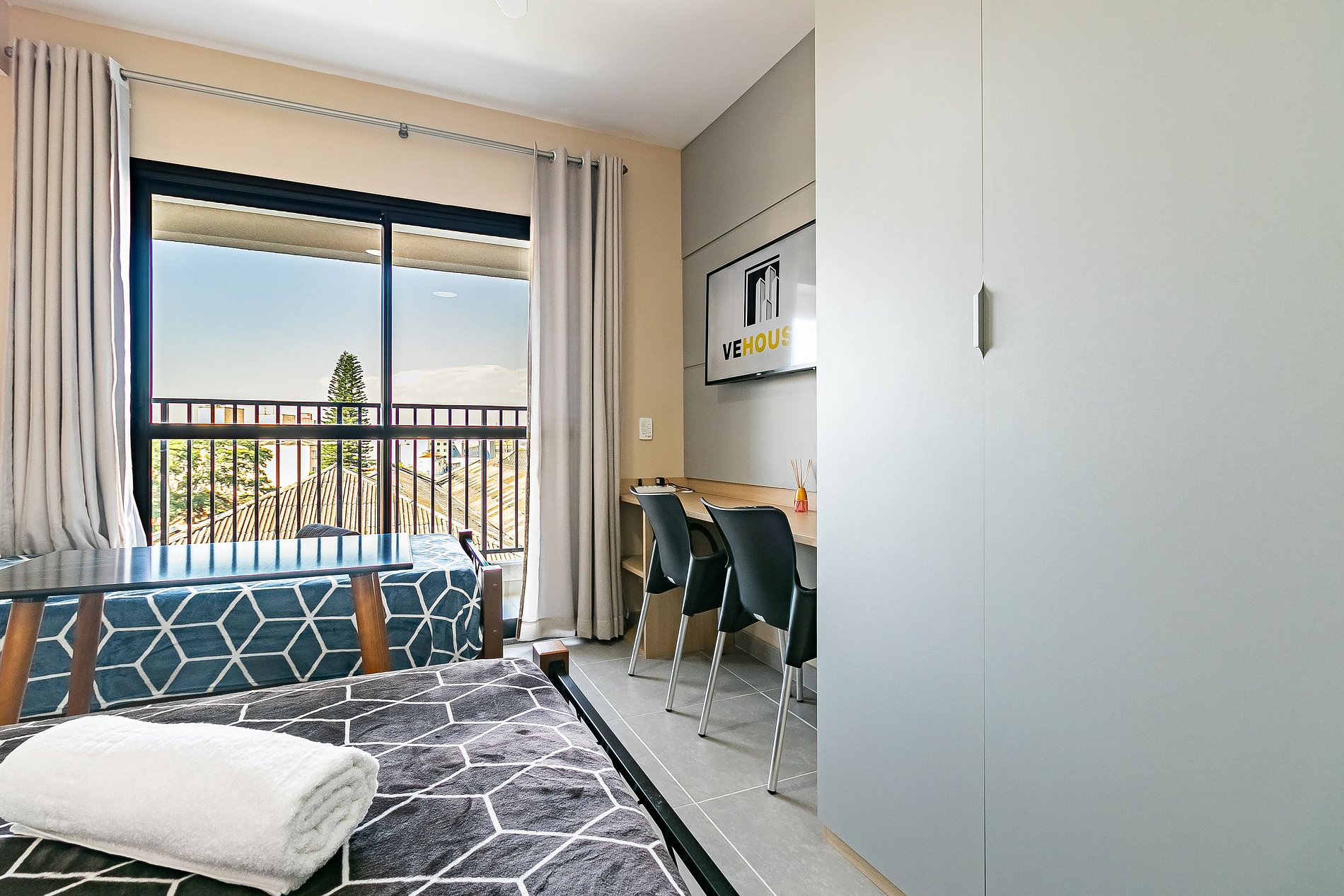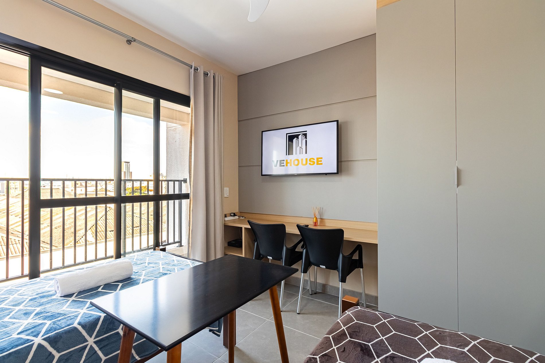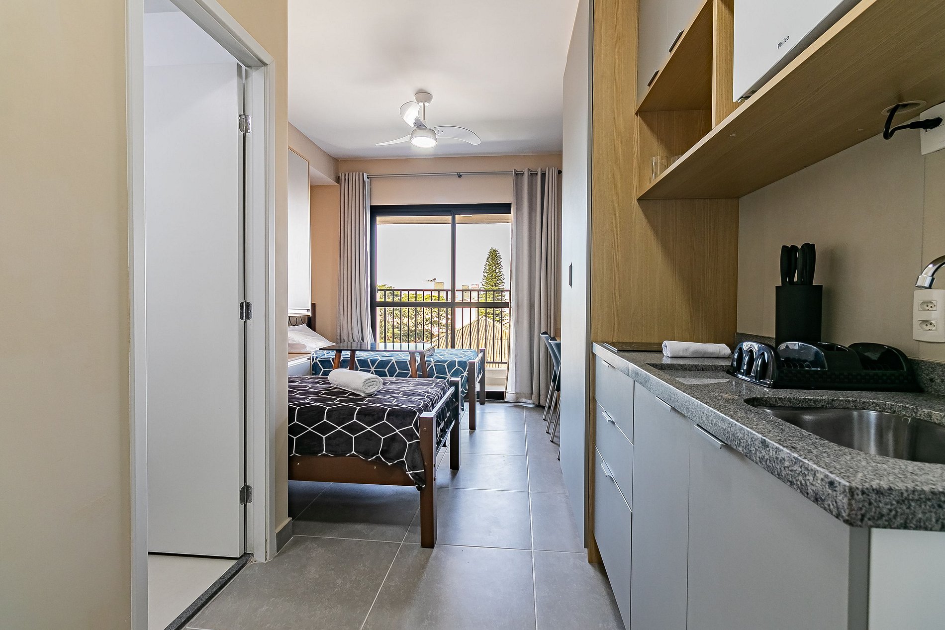 Apesar de estar no agito do Centro de São Paulo, nosso Studio é surpreendentemente calmo. Isso porque ele fica voltado para a parte interna do prédio, completamente isolado do barulho da rua — perfeito para descansar depois de um dia cheio.