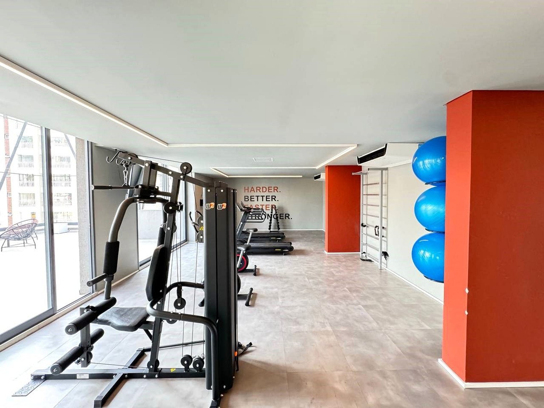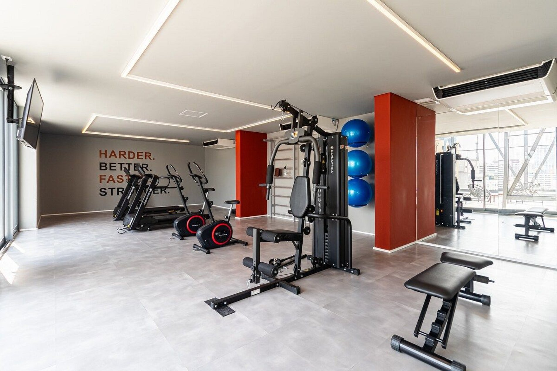 Os hóspedes podem acessar áreas comuns como Piscina, Academia, Lavanderia e CoWorking.