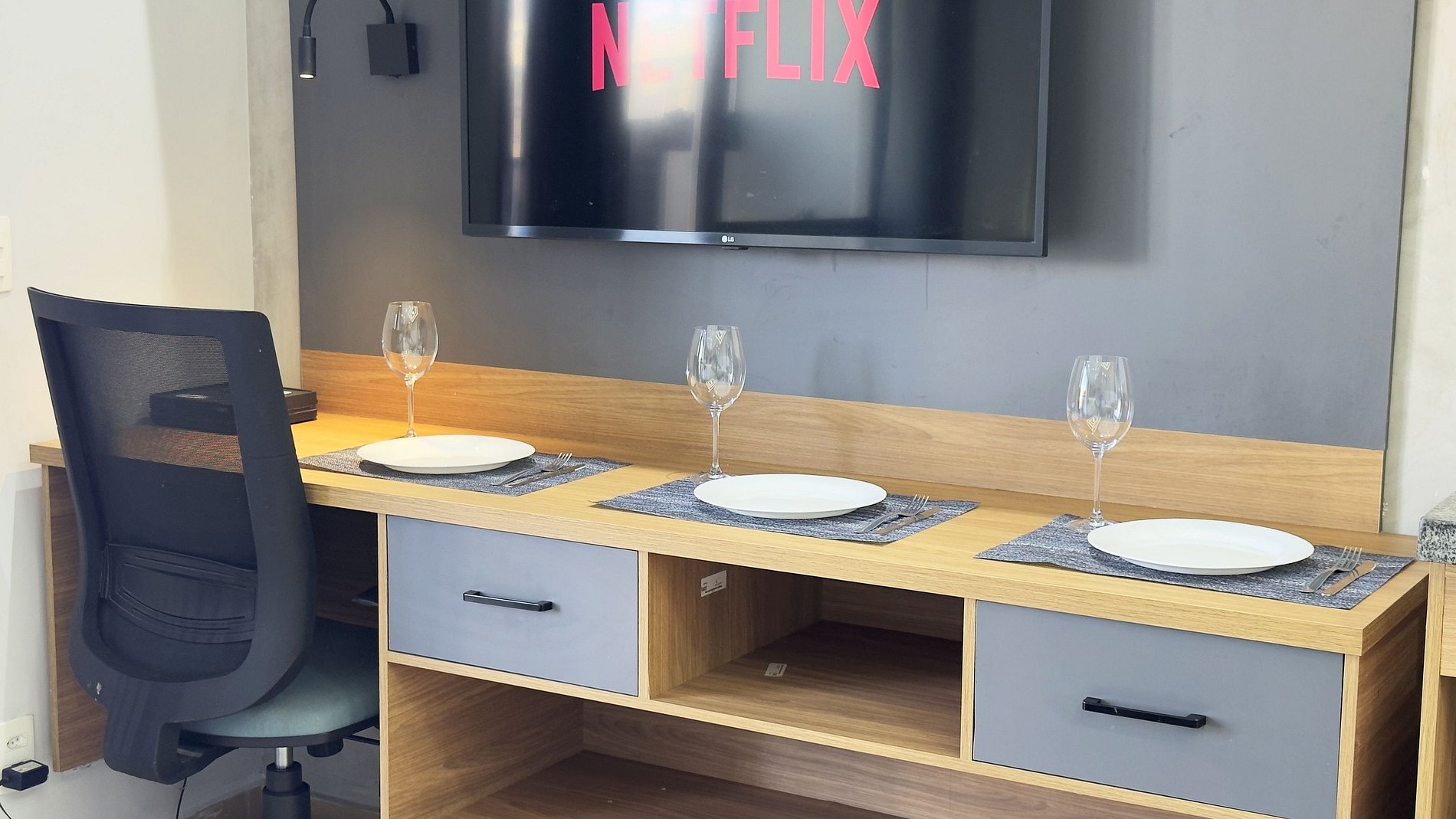 Apesar de estar no agito do Centro de São Paulo, nosso Studio é surpreendentemente calmo. Isso porque ele fica voltado para a parte interna do prédio, completamente isolado do barulho da rua — perfeito para descansar depois de um dia cheio.